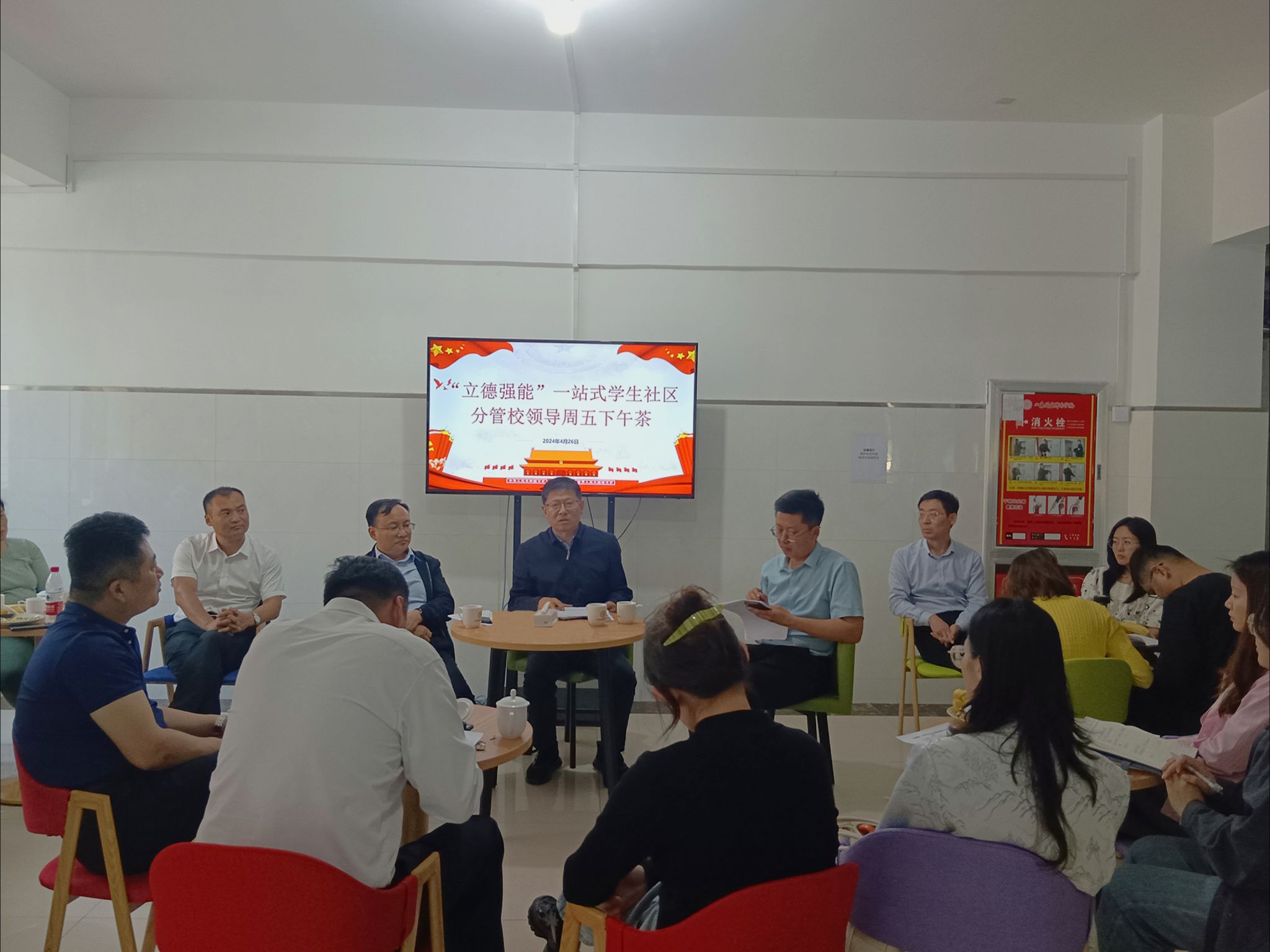 “周五下午茶”活動是我校“一站式”學生社區建設的常規工作和長效交流機制,參會人員主要為分管校領導和一線輔導員,以梳理匯總學生社區建設和學生日常工作推進的方式方法為主,在思考和討論交流中激發創新工作方法和問題解決辦法,為學校“一站式”學生社區建設和學生工作高質量發展筑牢根基。