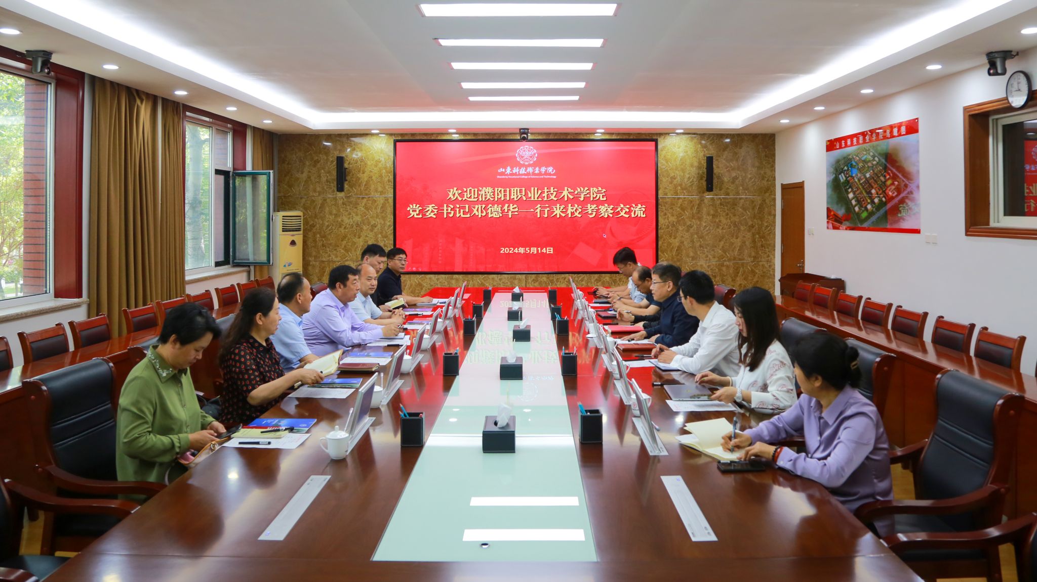 5月14日下午,濮陽職業技術學院黨委書記鄧德華一行到??疾旖涣鳌W校黨委副書記李保城會見來訪客人,并座談交流。