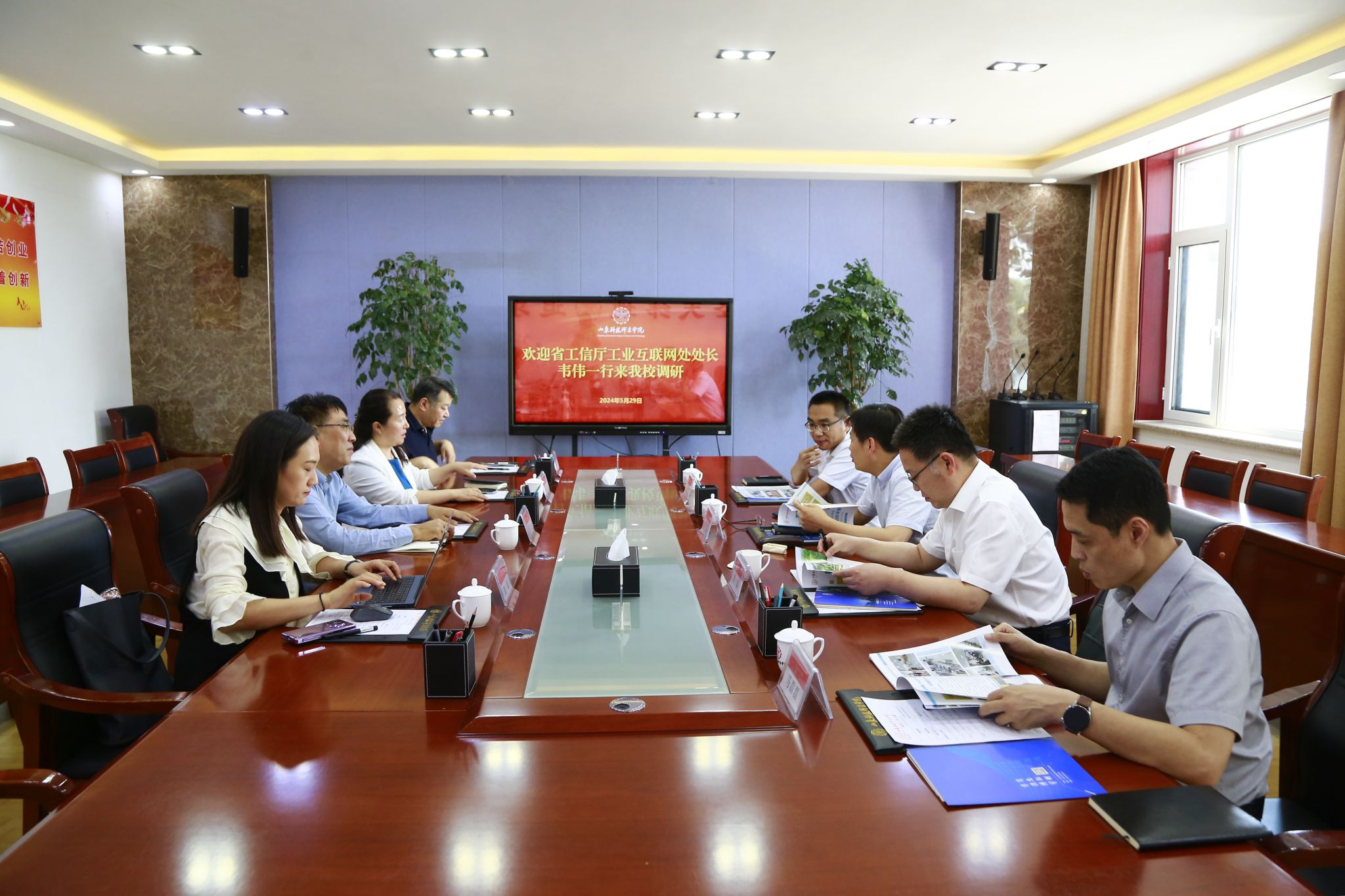 5月29日下午,山東省工業和信息化廳工業互聯網處處長韋偉在濰坊市工業和信息化局副局長劉斌陪同下一行四人來我校調研指導。學校黨委書記鄭德前會見來訪客人,黨委委員、副校長董傳民陪同座談調研。信息工程系、繼續教育與培訓部相關人員參加活動。