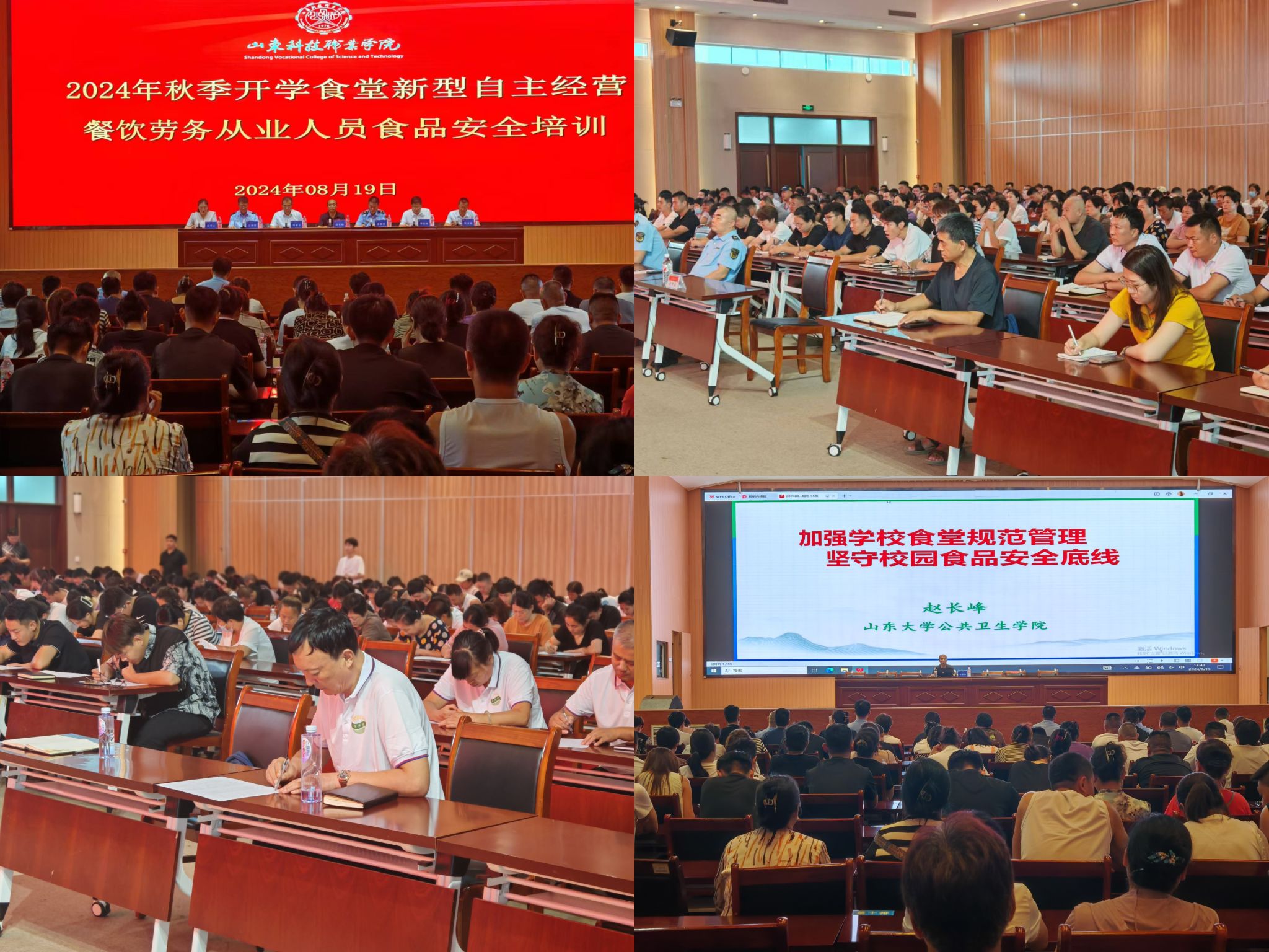 食為天,安為先。在秋季開學之際,我校食堂管理團隊秉承這一理念,致力于提升食品安全意識,確保師生飲食健康。8月19日,秋風送爽之際,我校南院報告廳內氣氛熱烈,一場關于食堂新型自主經營模式下的食品安全培訓活動正如火如荼地進行。學校特邀山東省食品專家、山東大學副教授趙長峰到校開展培訓,濰城區市場監督管理局主任康曉明、學校黨委副書記、校長劉福玉出席并講話。黨委副書記李保城主持活動,望留市場監管所所長王瑞國等一行、后勤服務管理處黨政負責人、各餐飲勞務公司負責人、全體餐飲從業人員等300余人參加培訓活動。