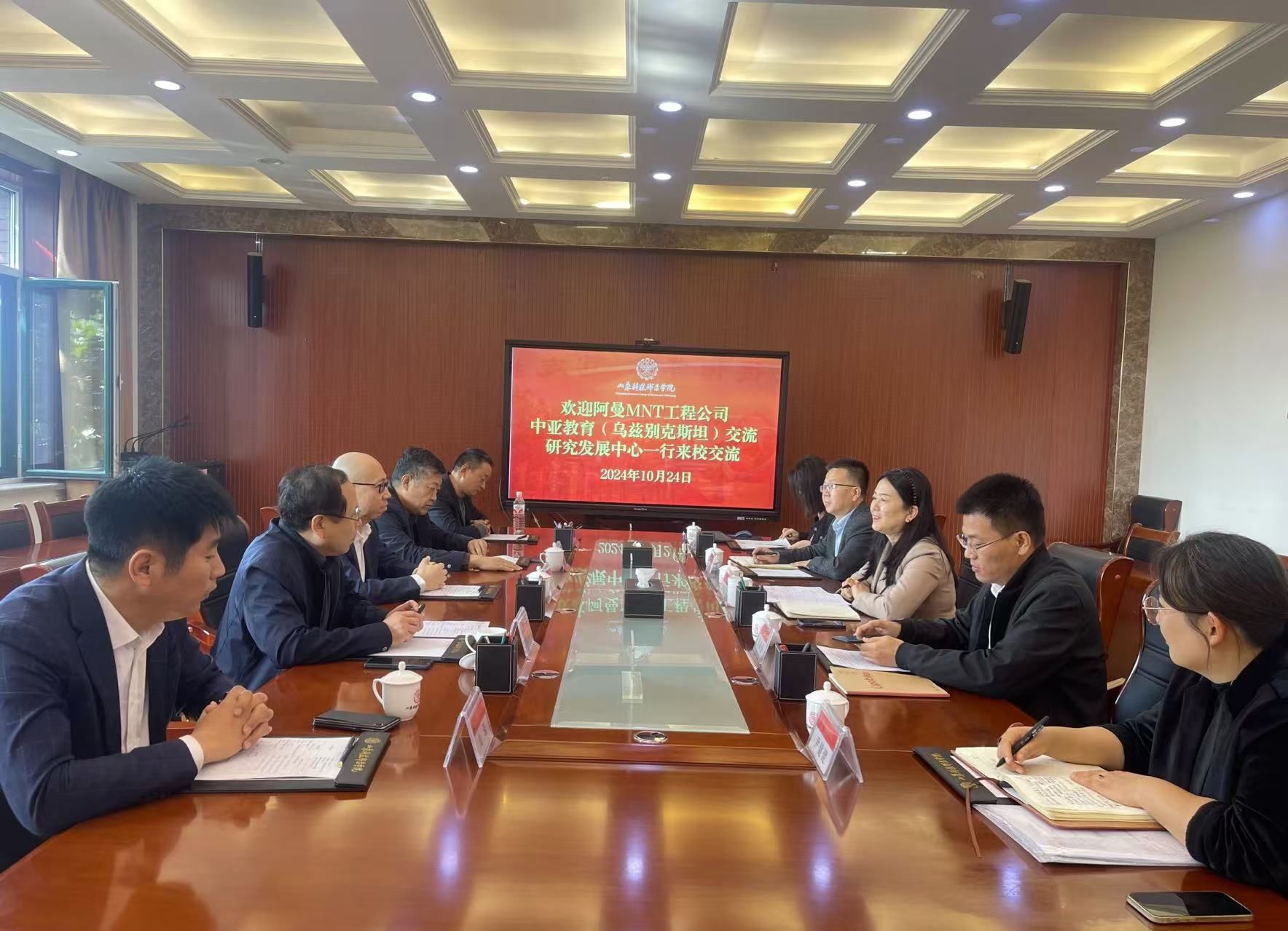 10月24日上午,阿曼MNT工程公司總裁蘇宇航、中亞教育(烏茲別克斯坦)交流研究發展中心主任王曉文、濰坊現代產教融合研究院院長田元訓、濰坊市產教融合研究院副院長馬玉才等一行5人來學校訪問交流,黨委委員、副校長徐曉雁接待來訪客人,并座談交流,國際教育系相關負責人員參會。