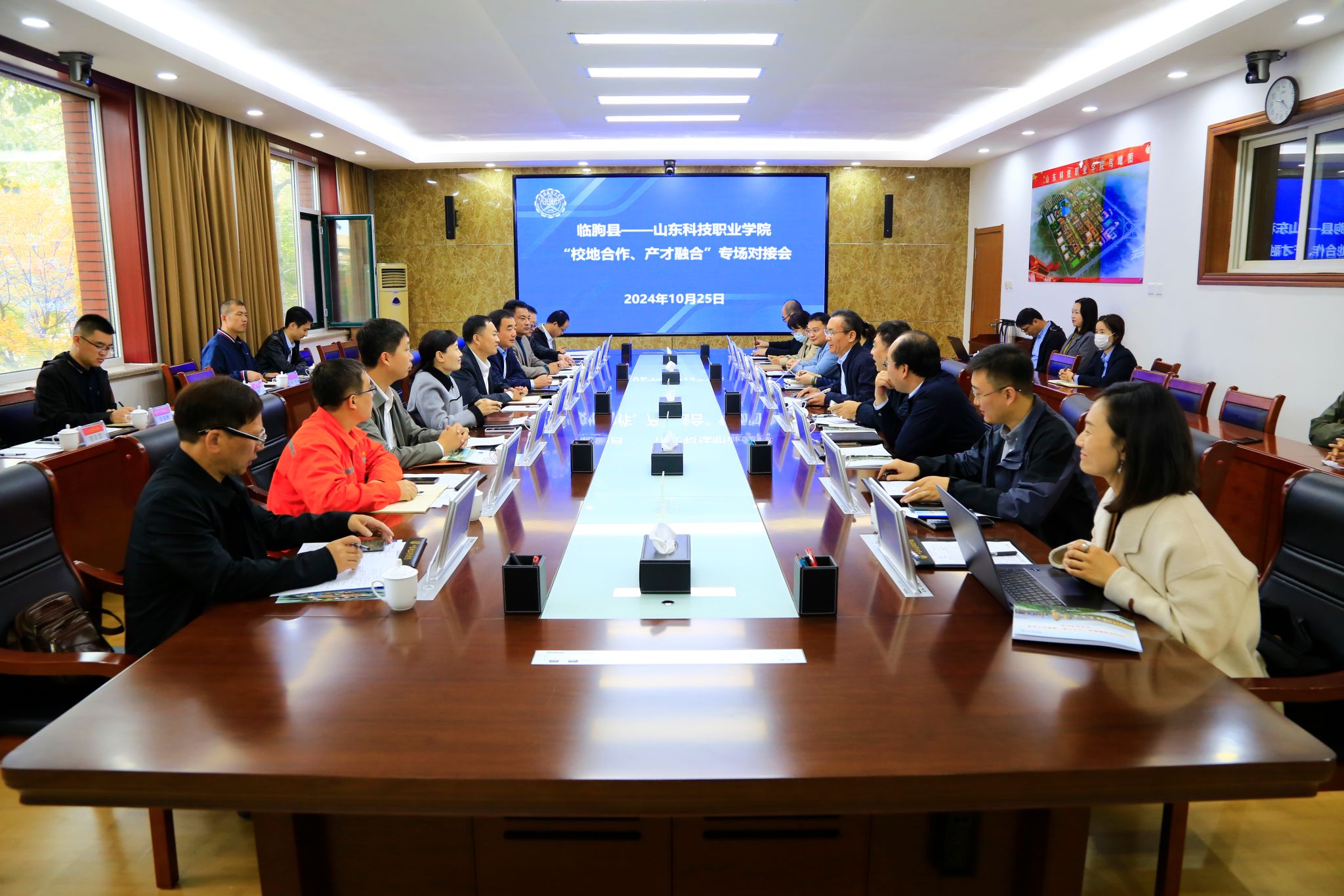 10月25日,臨朐縣—山東科技職業學院“校地合作、產才融合”專場對接會在山東科技職業學院召開。此次對接會由省派駐臨朐縣“四進”工作支隊牽線搭橋,臨朐縣人民政府黨組成員、副縣長董樹華,臨朐縣科學技術局黨組書記、局長李富華,臨朐縣科學技術局黨組成員、副局長劉明花,山東科技職業學院黨委副書記、校長劉福玉,黨委委員、副校長董傳民出席會議。臨朐縣10家重點企業技術負責人、學校相關部門負責人、科研骨干教師共計50余人參加會議。
