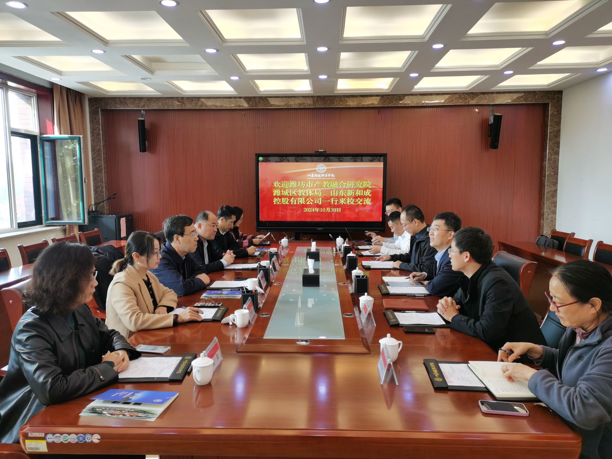 10月30日上午,濰坊市產教融合研究院、濰城區教體局、山東新和成控股有限公司一行來我校交流考察山科-現代醫藥產業學院建設情況。副校長張振東會見來訪客人,并座談交流。會議由生物與化學工程系主任主持,招生就業處副處長、生物與化學工程系專業主任、副主任參會。