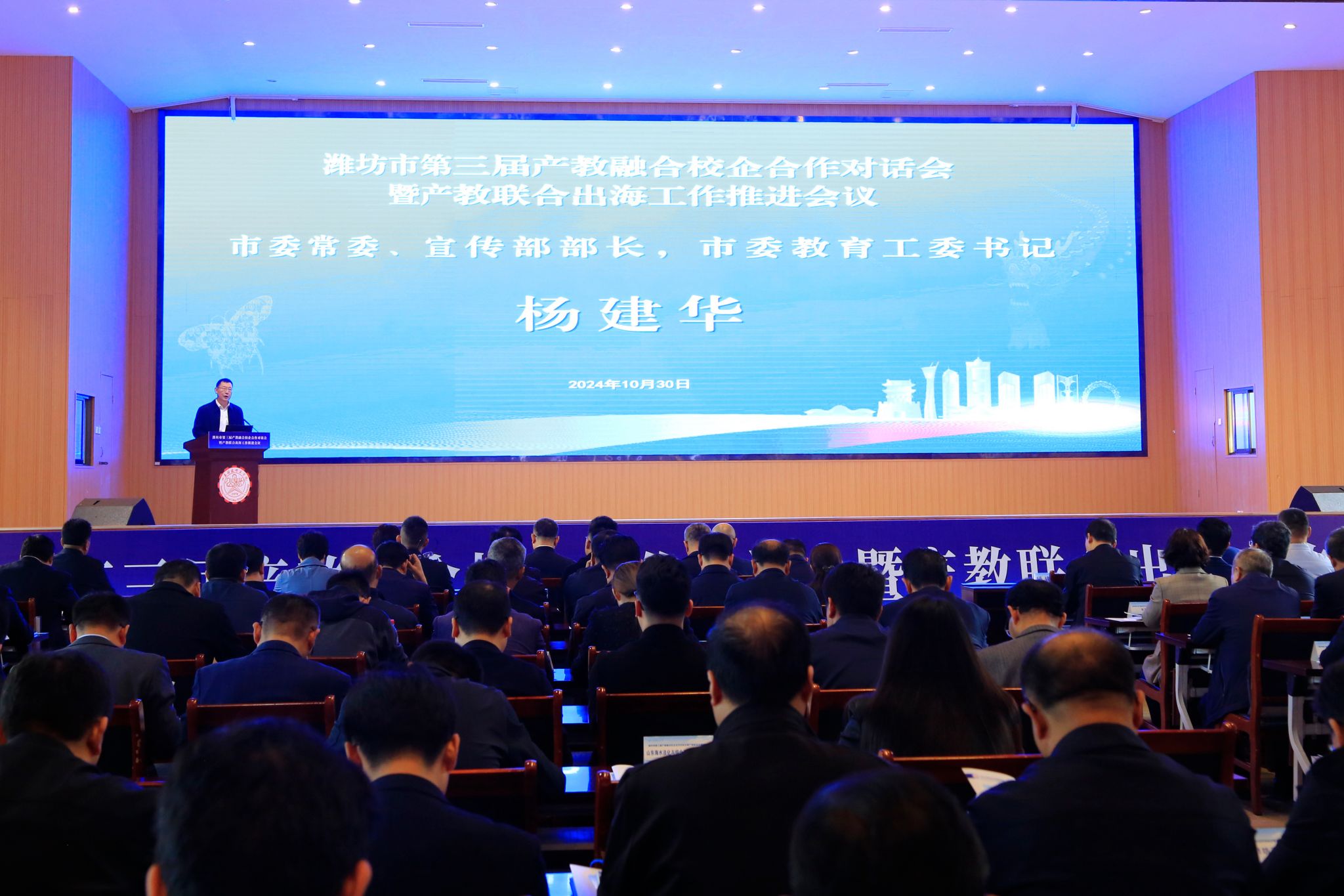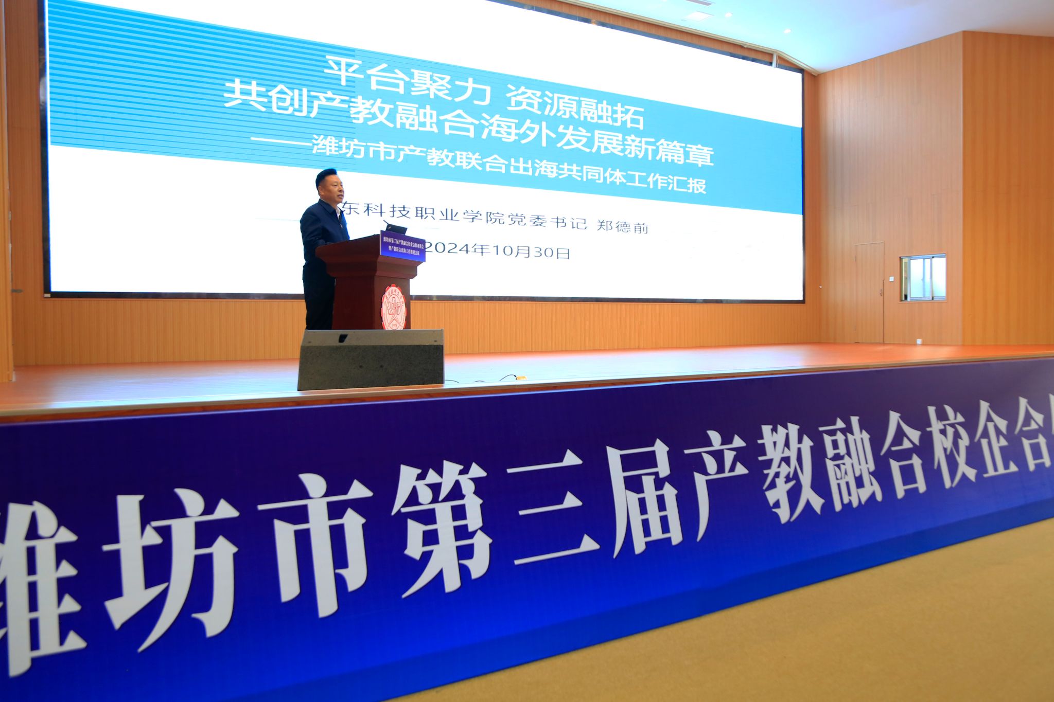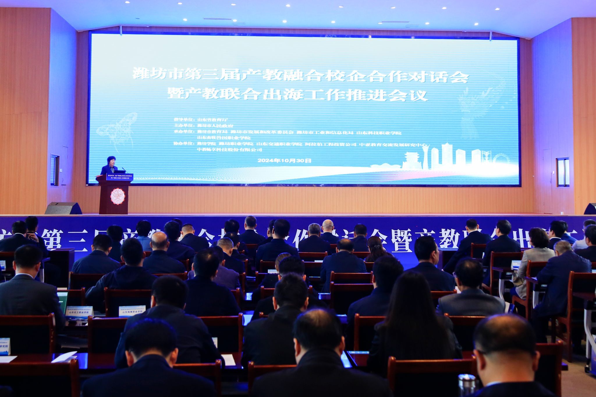 10月29日上午,濰坊市第三屆產(chǎn)教融合校企合作對(duì)話會(huì)暨產(chǎn)教聯(lián)合出海工作推進(jìn)會(huì)在學(xué)校南院多功能報(bào)告廳召開。本次會(huì)議主要目的是深入貫徹落實(shí)黨的二十屆三中全會(huì)精神,進(jìn)一步深化校企合作,推動(dòng)產(chǎn)教聯(lián)合出海,加快構(gòu)建職普融通、產(chǎn)教融合的職業(yè)教育體系,服務(wù)更好濰坊建設(shè)。