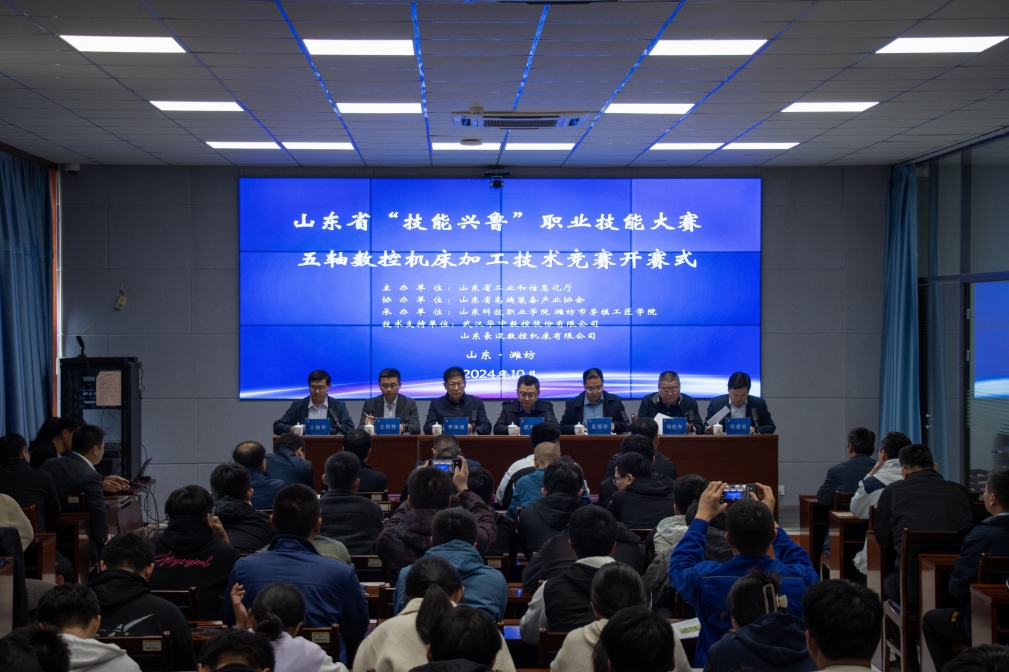 本次競賽為山東省首屆以五軸數控加工技術命名的職業技能競賽,由山東省工業和信息化廳主辦,山東省高端裝備產業協會協辦,山東科技職業學院承辦,武漢華中數控股份有限公司和山東豪邁數控機床有限公司提供技術支持。大賽認真貫徹落實習近平總書記關于職業教育的重要論述,落實大力弘揚勞模精神、勞動精神、工匠精神,積極營造