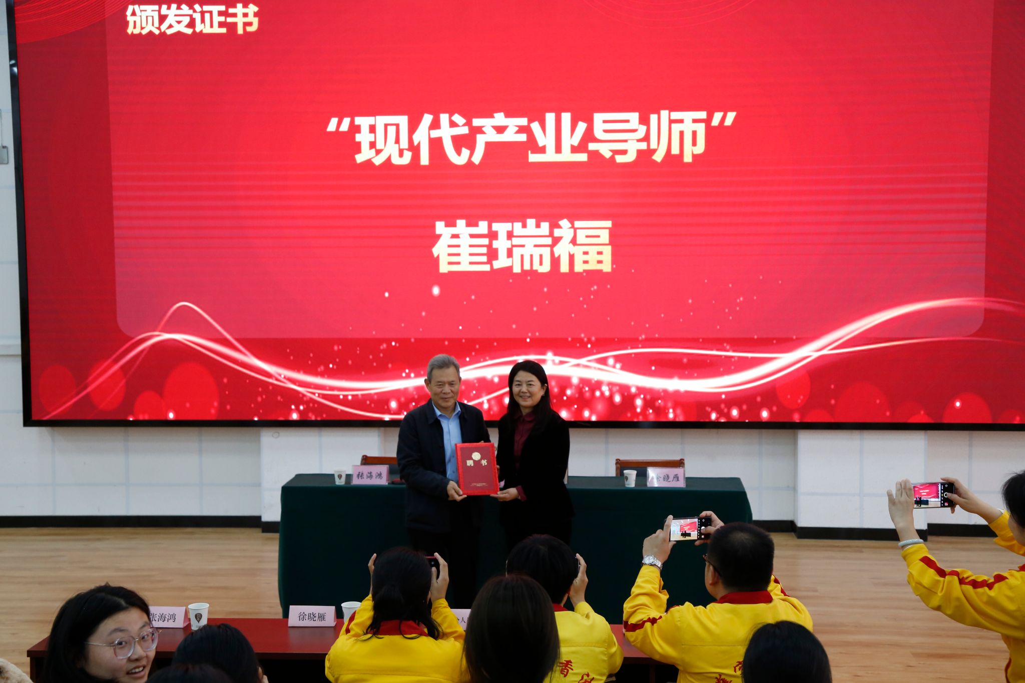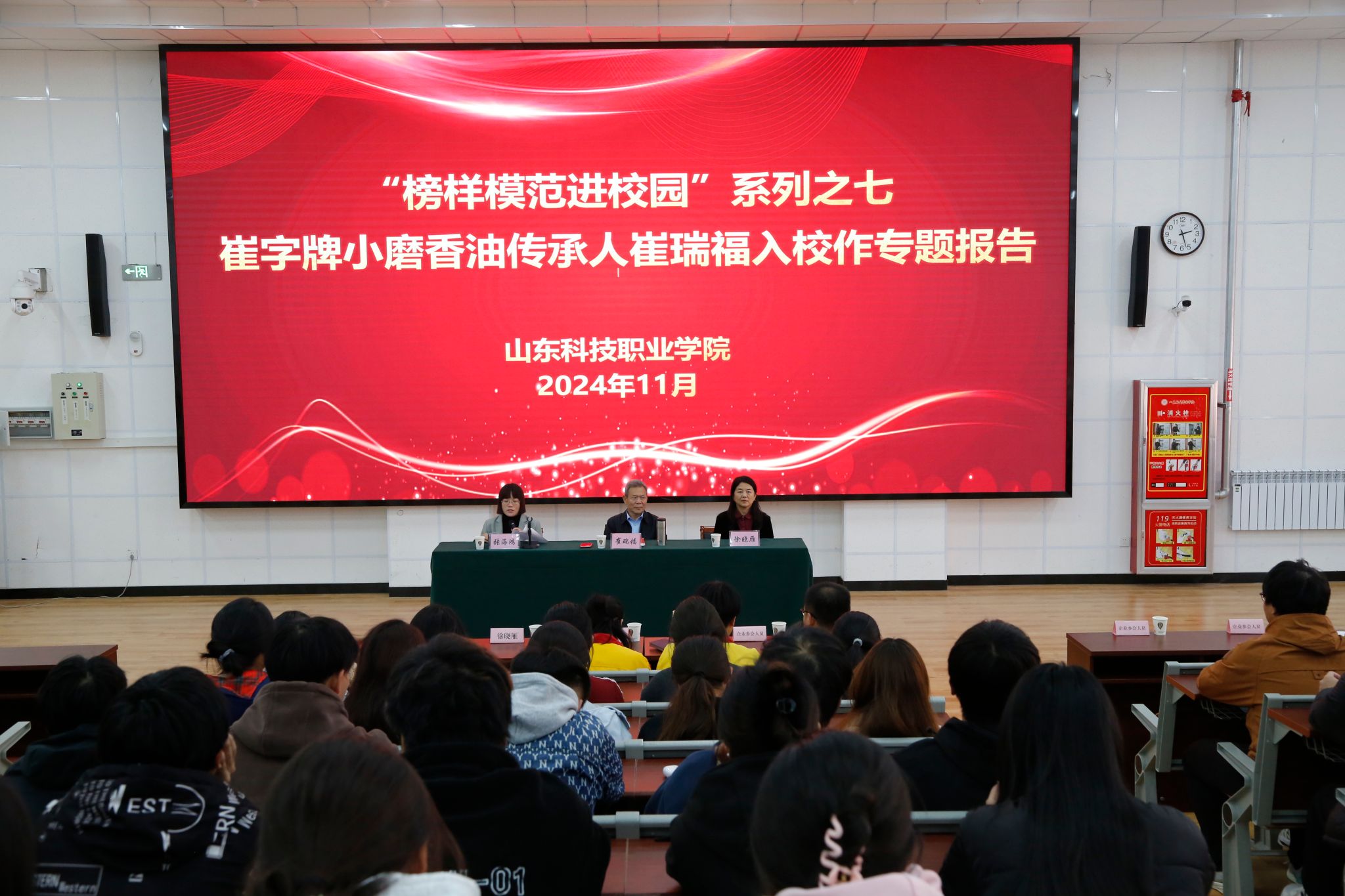 11月6日,瑞福油脂股份有限公司董事長、崔字牌小磨香油第二十代傳承人崔瑞福應邀來我校作專題報告,學校黨委委員、副校長徐曉雁為崔瑞福頒發“現代產業導師”“特聘思政課教師”聘書。報告會由思政課教學部負責人主持,現場座無虛席,生物與化學工程系、圖書館、思政教師及輔導員代表共300余名師生共同聆聽了報告會。