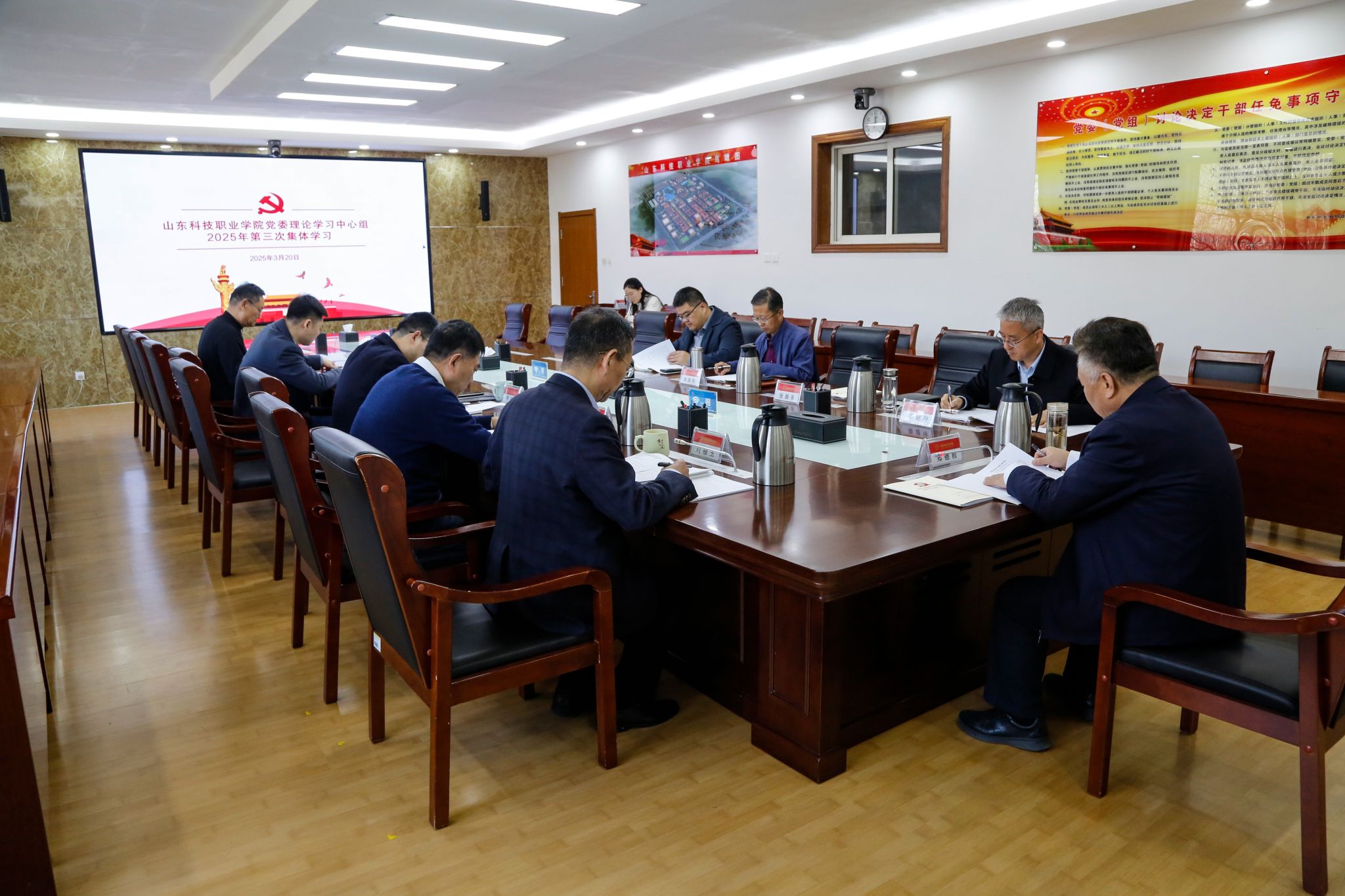 3月20日上午,學(xué)校黨委理論學(xué)習(xí)中心組在辦公樓第一會(huì)議室開展2025年第三次集體學(xué)習(xí)。學(xué)校黨委書記鄭德前主持學(xué)習(xí)并講話,中心組成員出席會(huì)議并分別領(lǐng)學(xué)相關(guān)篇目。相關(guān)職能部門負(fù)責(zé)人參加集體學(xué)習(xí)。