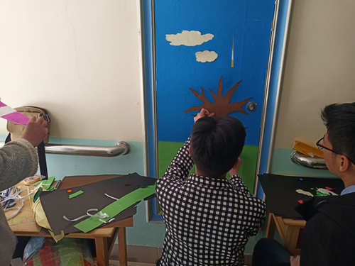 到達目的地后,志愿者和小朋友們“一對一”展開交流互動,幫助孩子們學習課程、完成手工作品以及給他們設計房間、黑板報等。活動期間,志愿者們熱情親切、耐心細致,獲得了康維培智學校負責人的極大肯定,她表示志愿者們每次都能配合好老師,積極與孩子們溝通,能夠堅持下來很不容易。
