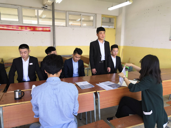 本次活動(dòng)針對學(xué)生即將邁入社會(huì),走向工作崗位的現(xiàn)實(shí)情況,本著訓(xùn)練和提升學(xué)生的面試應(yīng)變能力、成功展示潛力自我的原則,圍繞“潛力展示”采用韓企面試流程組織推進(jìn)。面試流程分為進(jìn)入面試場地提交簡歷、進(jìn)行韓文自我介紹、與面試官現(xiàn)場問答三個(gè)環(huán)節(jié)。提交簡歷環(huán)節(jié),注重對學(xué)生禮儀、舉止與著裝的考核;自我介紹環(huán)節(jié),側(cè)重對學(xué)生韓語聽說與表達(dá)能力的考核;與面試官互動(dòng)環(huán)節(jié)強(qiáng)調(diào)對學(xué)生自我見解表述、思維表達(dá)方式能力的考核。學(xué)生分組進(jìn)入面試室,對于學(xué)生提交的雙語簡歷、面試過程中的表現(xiàn),面試官老師就每一名學(xué)生分別給出評價(jià)和建議,并著重強(qiáng)調(diào)了現(xiàn)實(shí)面試中需要注意的事項(xiàng)和韓語話術(shù)建議。