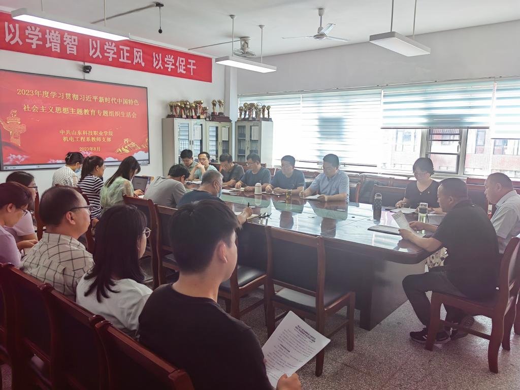 8月25日,機電工程系教師黨支部在博學樓B203黨員活動室召開學習貫徹習近平新時代中國特色社會主義思想主題教育專題組織生活會,會議由黨支部書記主持,學院組織生活會指導員到會指導,系黨總支書記列席會議。