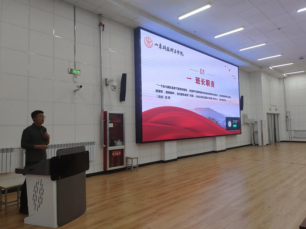 學生工作處負責人為此次班長培訓班開班。向新生班長提出要堅定理想信念、強化服務意識、練就過硬本領三點要求。他表示,新征程要有新的氣象,對新青年也有新的要求和期望,班長作為班級的“凝結核”要做好凝聚、引領、服務青年的重要工作。