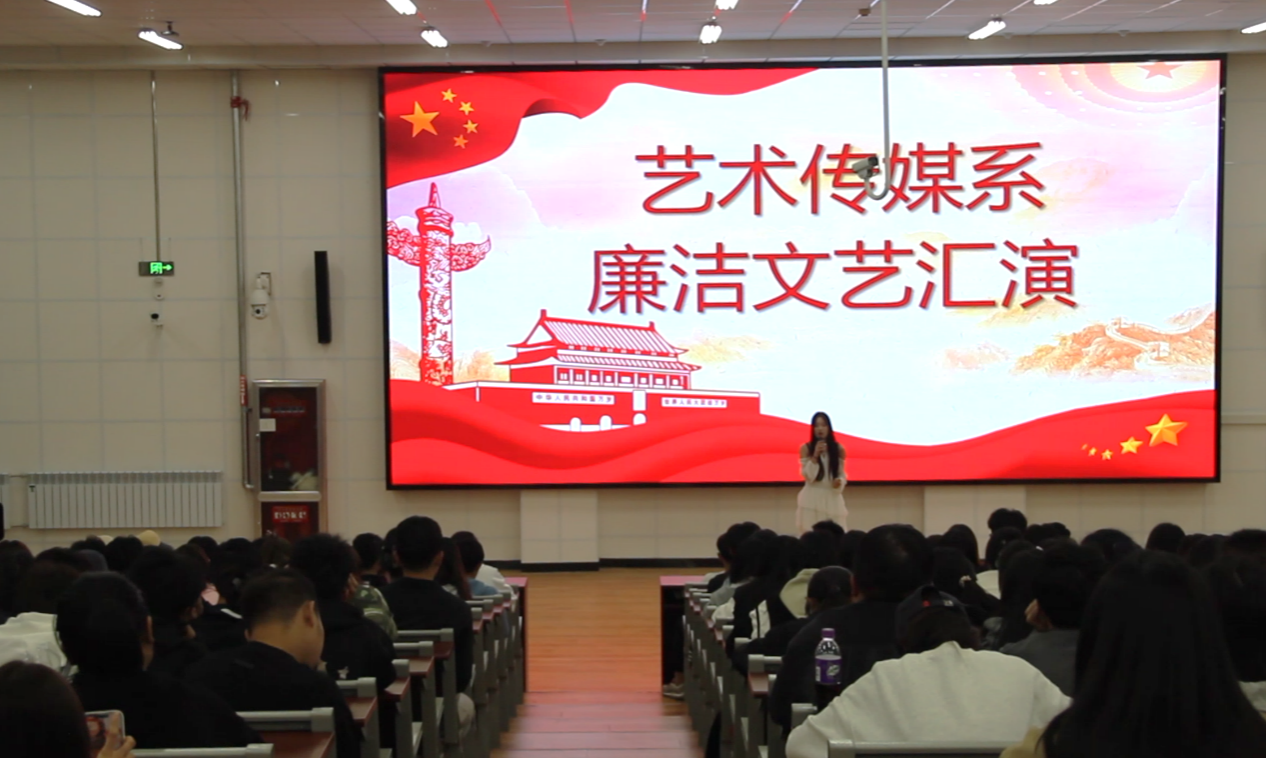 10月18日晚,藝術傳媒系在厚德樓B301教室舉辦了廉潔文藝匯演。此次活動以“愛國、廉潔、擔當”為主題,旨在通過多種形式的藝術表演,向廣大學生傳遞廉潔自律的正能量,培養他們良好的道德品質和社會責任感?;顒蝇F場,同學們以朗誦的形式,表達了青年熱愛祖國、報效祖國的決心和對廉潔社會建設的堅定信心。他們用鏗鏘有力的聲音,洋溢著青春的朝氣與活力,訴說著同學們內心深處的理想信念,傳遞著高尚廉潔的青春信念;隨后,鄧婉婷、王珺珩、陳語諾等同學展示了精彩的合唱表演《少年中國說》。除此之外,藝傳學子以舞蹈和小品的形式,將廉潔文化融入其中,以自己的方式,詮釋著對廉潔文化的理解和擔當,用實際行動踐行著“融廉于景,化廉入心”的理念。