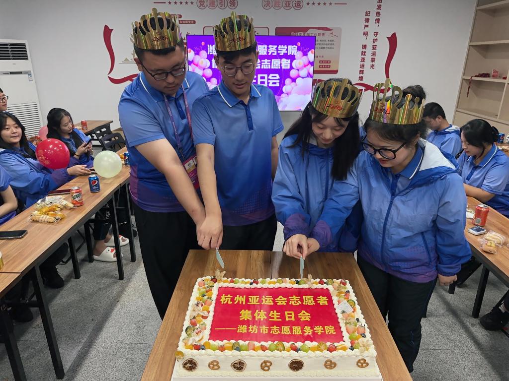 為營造和諧、友愛的良好氛圍,增強志愿者團隊凝聚力和向心力,濰坊市志愿服務學院為亞運會志愿者在各住宿點分別舉辦集體生日會,為志愿者們送上“生日驚喜”和暖心祝福,并對志愿者的辛勤付出表示感謝。