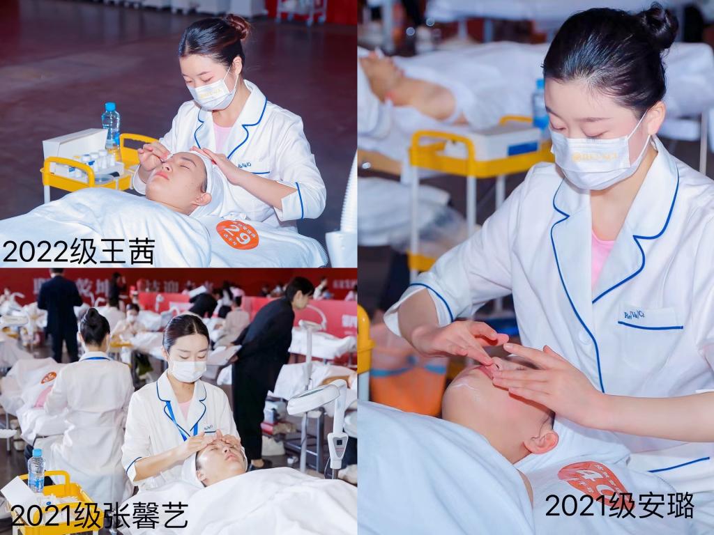 大賽共設立了皮膚管理師、科學美膚師等幾大賽項,每個賽項僅設冠軍1名、亞軍2名、季軍3名。共有來自全國22個省、自治區、直轄市的460余名選手參加, 是中國美業的頂級賽事,權威性強,行業影響力廣泛。我院人物形象設計專業葛玉珍教師帶領教研室成立大賽籌備組,組織多次模擬比賽,注重每一個細節訓練,最終2021級學生安璐憑借過硬的技能水平一舉斬獲皮膚管理師賽項的金獎,2021級張馨藝獲得了季軍,2022級王茜獲得優秀獎。