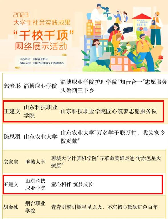 近日,由中國青年報社主辦的2023大學生社會實踐成果“千校千項”網絡展示活動評選結果公布,機械工程系“匠心筑夢”志愿服務隊同時獲優(yōu)秀項目和優(yōu)秀視頻兩個獎項。