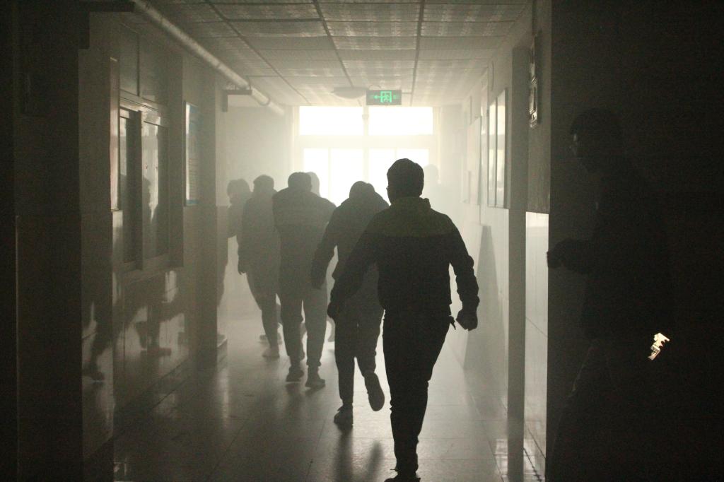 會上,系部老師結合剛剛發的四川木里森林火災情況對此次演練培訓做了動員講話。隨后,安全保衛處專業工作人員借助實際案例進行了全面講解,主要包括日常生活中的消防安全常識、火災的危害性、火災自救技能、疏散逃生的注意事項等知識。隨著預警信號的響起,全體老師組織學生,迅速進入緊急疏散狀態,在安全保衛處老師的帶領下,全體人員用毛巾、手帕等捂住口鼻有序撤離火災現場;整個應急演練活動規范、有序、緊湊、高效,按照疏散演練方案設定的逃生路線,迅速而有序地到達指定安全位置。