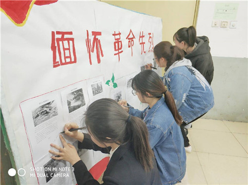 活動伊始,李慧同學領唱《歌唱祖國》,緊接著團總支書記借助PPT講述了此次活動的目的和意義,又組織觀看《緬懷英烈憶長征》紀錄片。視頻播放完畢,鄭秀婷同學為大家帶來緬懷先烈的詩朗誦,將現場氣氛推向了高潮。最后,團總支書記組織同學們依序來到“緬懷革命先烈”的展板前,紛紛寫下對烈士的“敬意”。