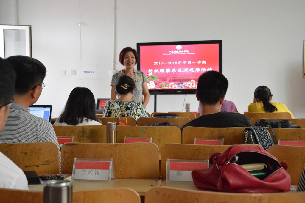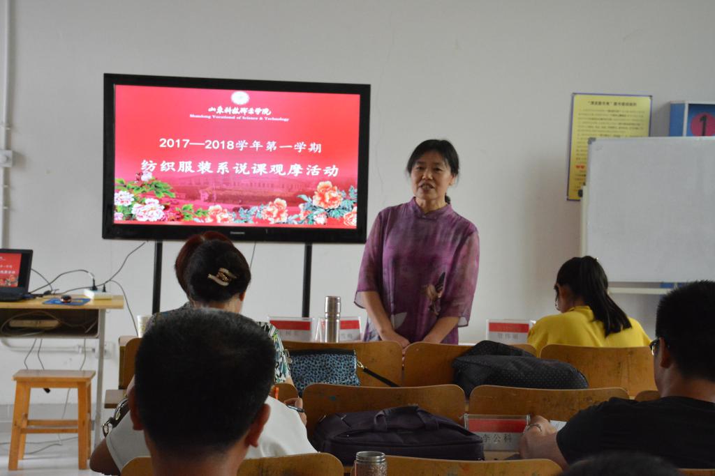 按照《紡織服裝系2017—2018學年第一學期說課觀摩活動通知》,魏雪梅教授從每個專業中現場抽取一位老師進行公開說課,王樹英教授抽取了每個專業的說課順序,共有5位專任教師依次進行了說課展示,每位教師經過精心準備,緊緊圍繞“課程定位、教學內容、學習方法、考核方式”等方面展開,評委們從老師的課件設計質量、課堂目標、對本門課程的學習要求、課程考核要求等方面進行評價。