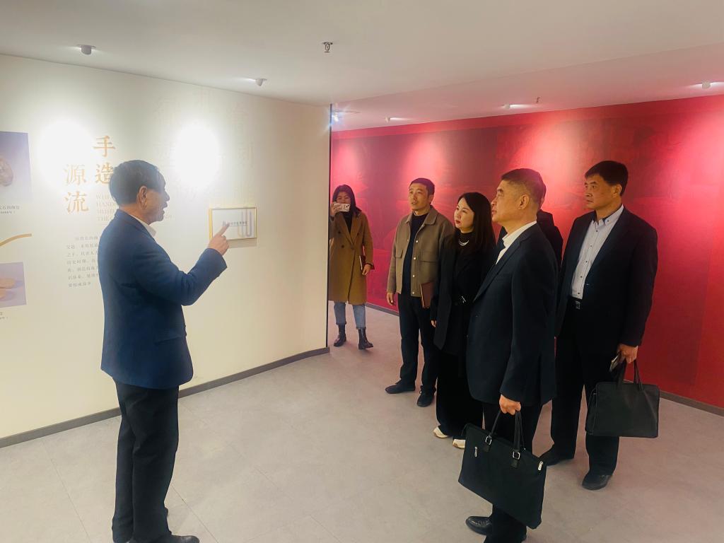 調(diào)研組在丁傳信的陪同下,參觀了位于十笏園文化街區(qū)的濰坊手造博物館,與10余名手造項(xiàng)目工藝美術(shù)大師就技藝技能傳承、優(yōu)秀文化傳播等發(fā)面深入交流。姜永亮在致辭中講到,山東科技職業(yè)學(xué)院在地方文化保護(hù)和傳統(tǒng)文化研究、非遺兩創(chuàng)和培育新時(shí)代新人等方面做了大量的嘗試和創(chuàng)新的實(shí)踐。希望以此次合作為契機(jī),充分借助學(xué)院優(yōu)良的師資團(tuán)隊(duì)和強(qiáng)大的科研力量,在更大范圍、更高水平、更深層次、更寬領(lǐng)域上深入探索非遺教學(xué)研產(chǎn)用一體化保護(hù)新模式,進(jìn)一步加大校地雙方在非遺保護(hù)傳承方面的合作力度,更好推進(jìn)非遺兩創(chuàng)和可持續(xù)性發(fā)展。