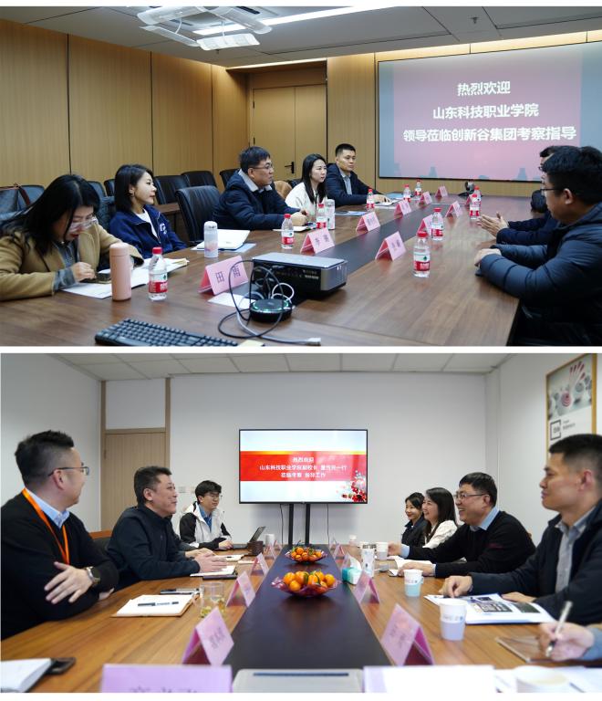 在山東新視覺數碼科技有限公司,董事長王鐵兵詳細介紹了公司的經營情況、技術創新以及市場布局,并重點匯報了與藝術傳媒系的合作現狀、共建產業學院推進情況。董傳民就加強產學研合作、實施科教融匯、引進企業項目提升師生技術技能、利用科研反哺教學、共同培養高素質人才等與對方進行了深入研討交流并達成初步意向。