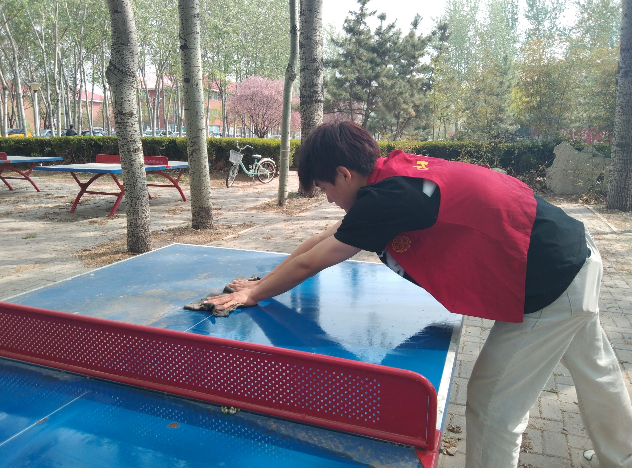 活動過程中,志愿者身著紅馬甲,手拿掃帚、夾子、垃圾桶等衛生工具,在校園衛生區域及乒乓球臺附近開展環境衛生大掃除活動。星火傳承,生生不息。經管學子用實際行動做文明傳播的使者,為校園增添了一抹亮麗的景色。本次志愿服務活動在為師生營造整潔環境的同時,展現了經濟管理系志愿者團結、奉獻、友愛、互助的良好形象。