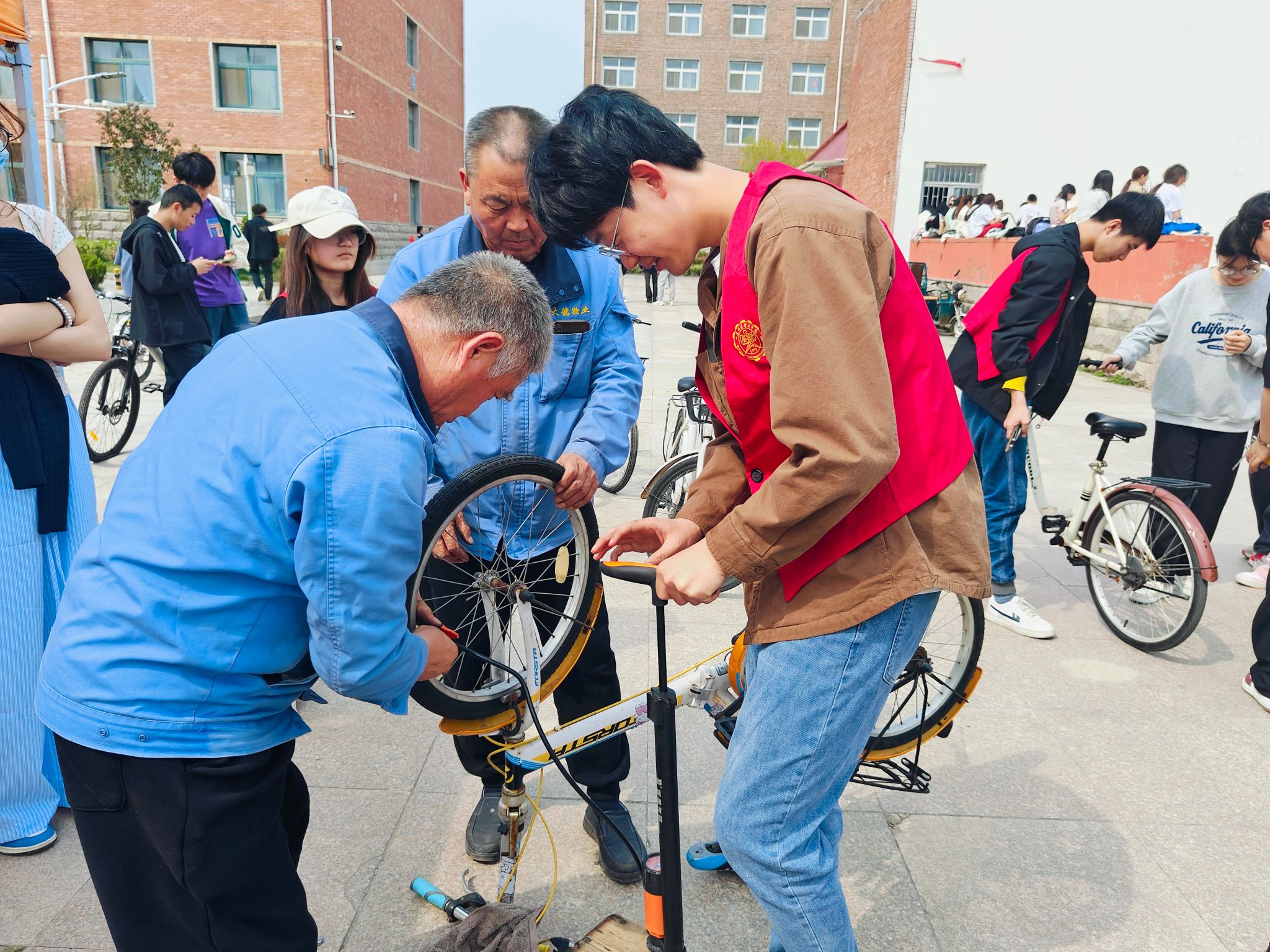 活動過程中,師生來往不斷,紛紛將需要縫補的衣物、維修的自行車、書包和衣物架等物品送去現場。社區服務人員用心修補每一件物品,為同學們帶去了溫暖和便利,讓師生們感受到了社區大家庭的溫暖。