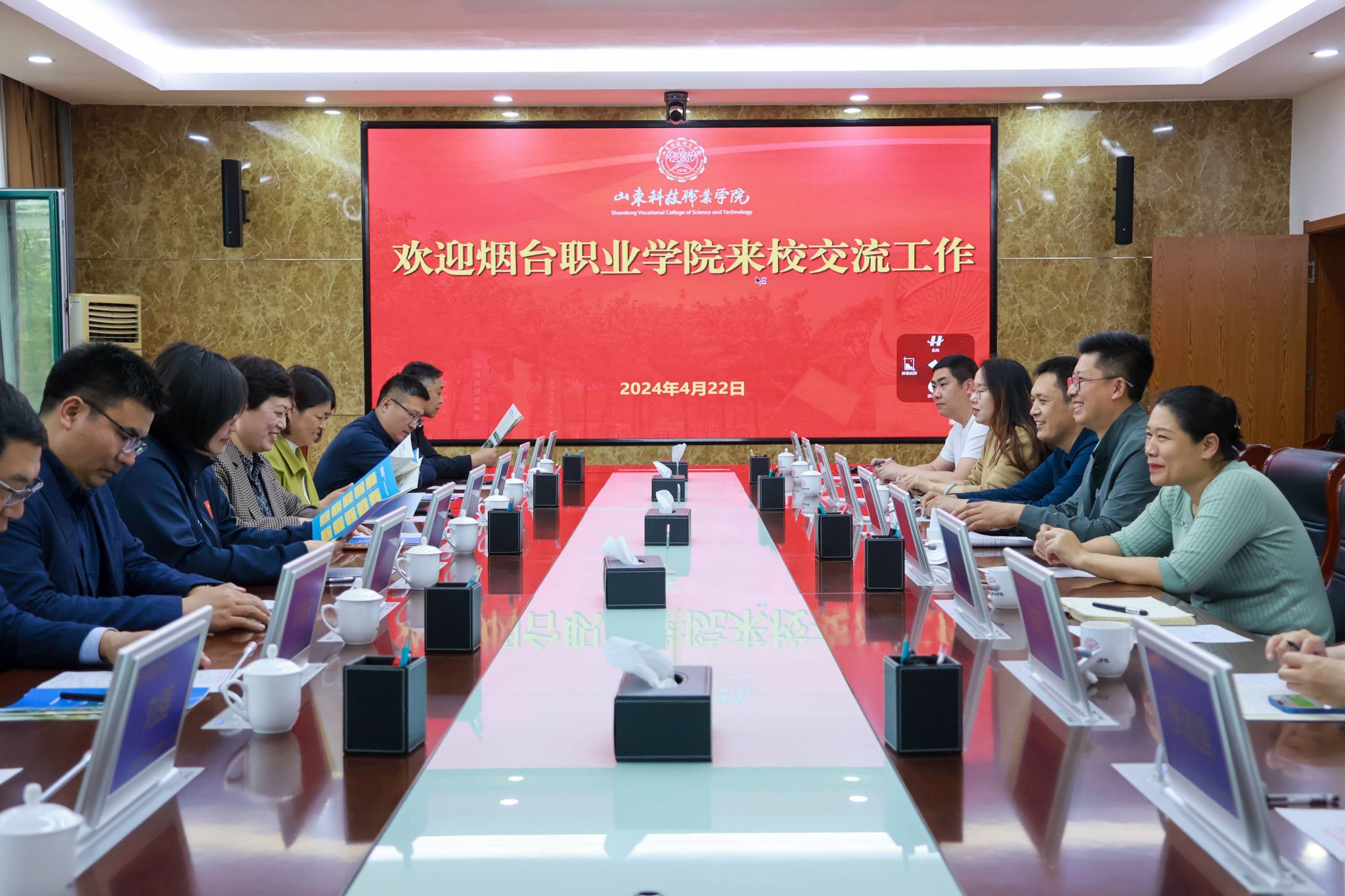 4月22日,煙臺職業學院學生處(團委)一行14人來訪我校進行工作交流,學生工作處(武裝部)及各系部參與來訪接待。