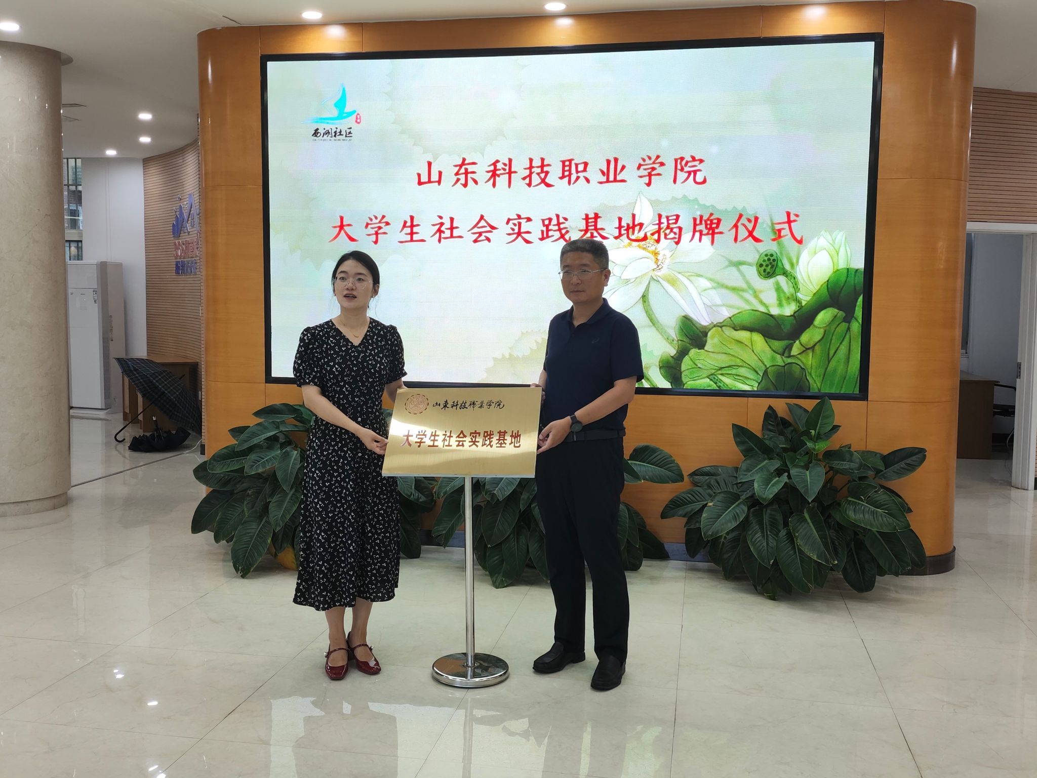 7月23日,信息工程系黨總支書記王芳偉與山東省文明社區昌樂縣寶都街道西湖社區書記杜雅潔,共同完成大學生社會實踐基地揭牌儀式。雙方表示,希望通過宣講活動提高社區兒童對中國古代繪畫的了解,增進他們的文化自信,在以后會加強與社區合作,通過優質的社會實踐活動為社區建設貢獻高校學子的力量。