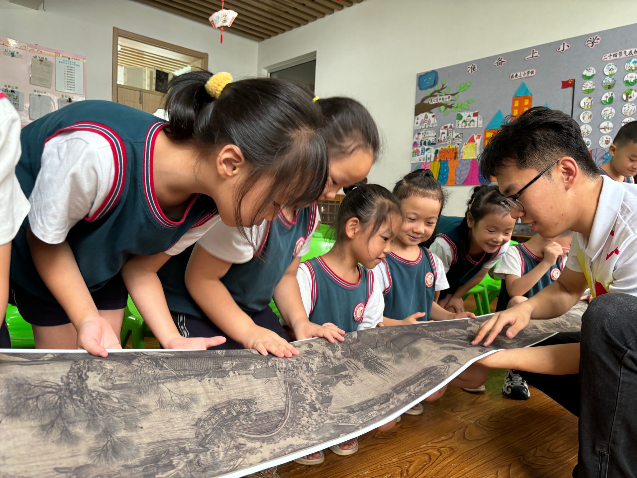 7月23日,宣講團隊走進山東省文明社區——西湖社區,在這里為社區42名小朋友進行了2兩場繪畫宣講。首場的《繪見農耕:品畫·讀詩·科普》主題宣講中,團隊成員帶領小朋友們一起品畫、讀詩、聊科學,在中國古代繪畫中“繪見”農耕文化,解譯中華民族文明密碼。在《中國古代繪畫中的歷史景象》宣講期間,通過現場互動、品讀詩詞的方式,向小朋友們講述了至圣先師孔子的故事,闡述了古代繪畫中人像產生的重要意義。團隊成員通過展示被譽為“中華第一神品”、中國十大傳世名畫之一的《清明上河圖》,讓小朋友們近距離賞畫,品讀歷史故事,感受中華文化的源遠流長。最后,宣講團帶領小朋友們開展了“彩繪國風燈籠,傳承繪畫之美”國風燈籠作畫體驗活動,讓他們在體驗繪制燈籠的喜悅感中,加深他們對傳統文化的理解與喜愛。