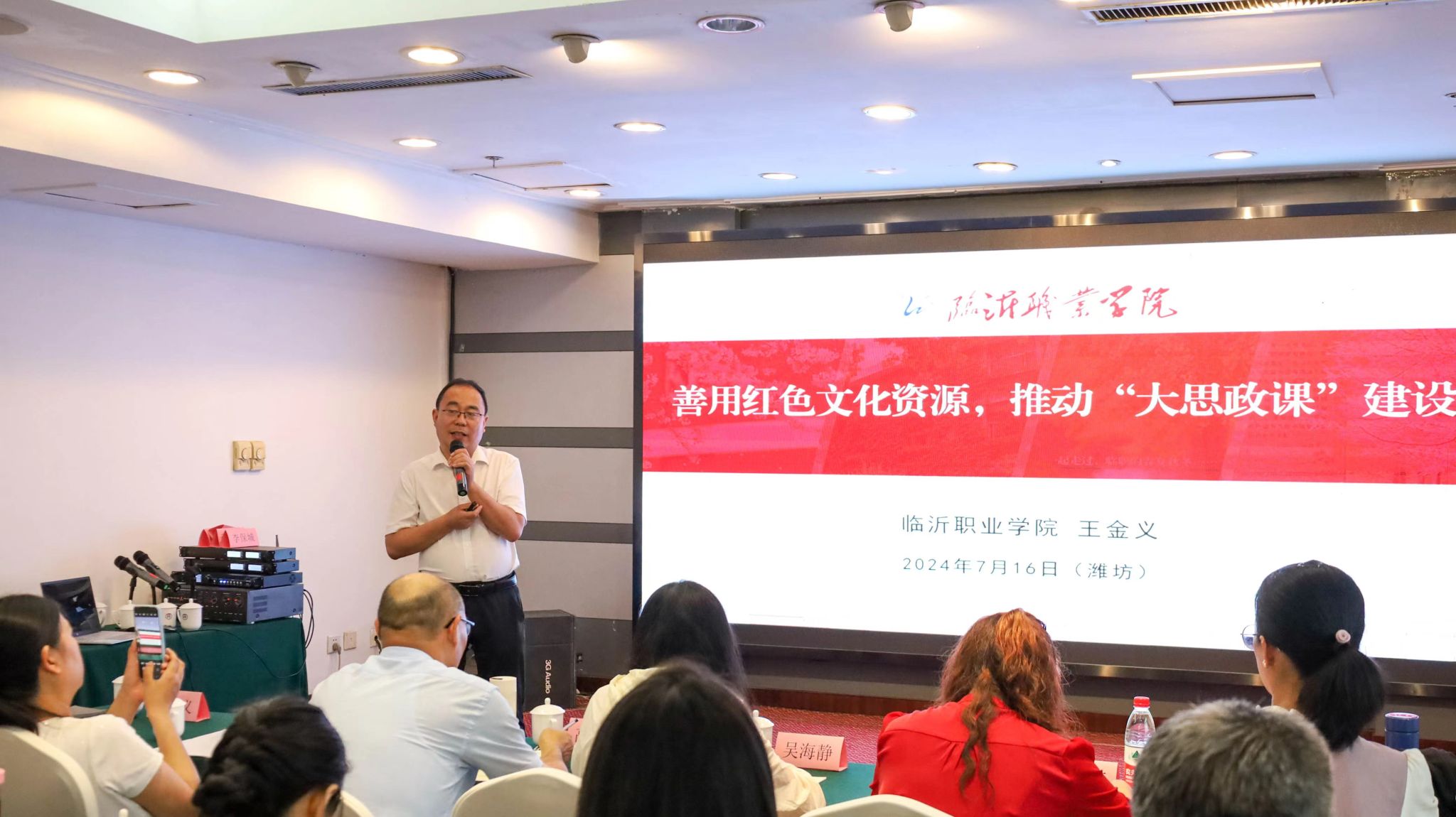 開班儀式后,臨沂職業(yè)學(xué)院馬克思主義學(xué)院院長王金義為全體學(xué)員作了主題為“善用紅色資源融入‘大思政課’建設(shè)的高校思政課改革和實(shí)踐”講座。王教授從紅色文化資源的科學(xué)內(nèi)涵、習(xí)近平總書記對“大思政課”建設(shè)的重要論述、紅色文化資源融入“大思政課”建設(shè)的意義及路徑等六個(gè)方面闡述了“大思政課”改革創(chuàng)新與紅色文化培育有機(jī)結(jié)合的學(xué)理依據(jù)和實(shí)踐機(jī)理,具有極強(qiáng)的參考和借鑒意義。