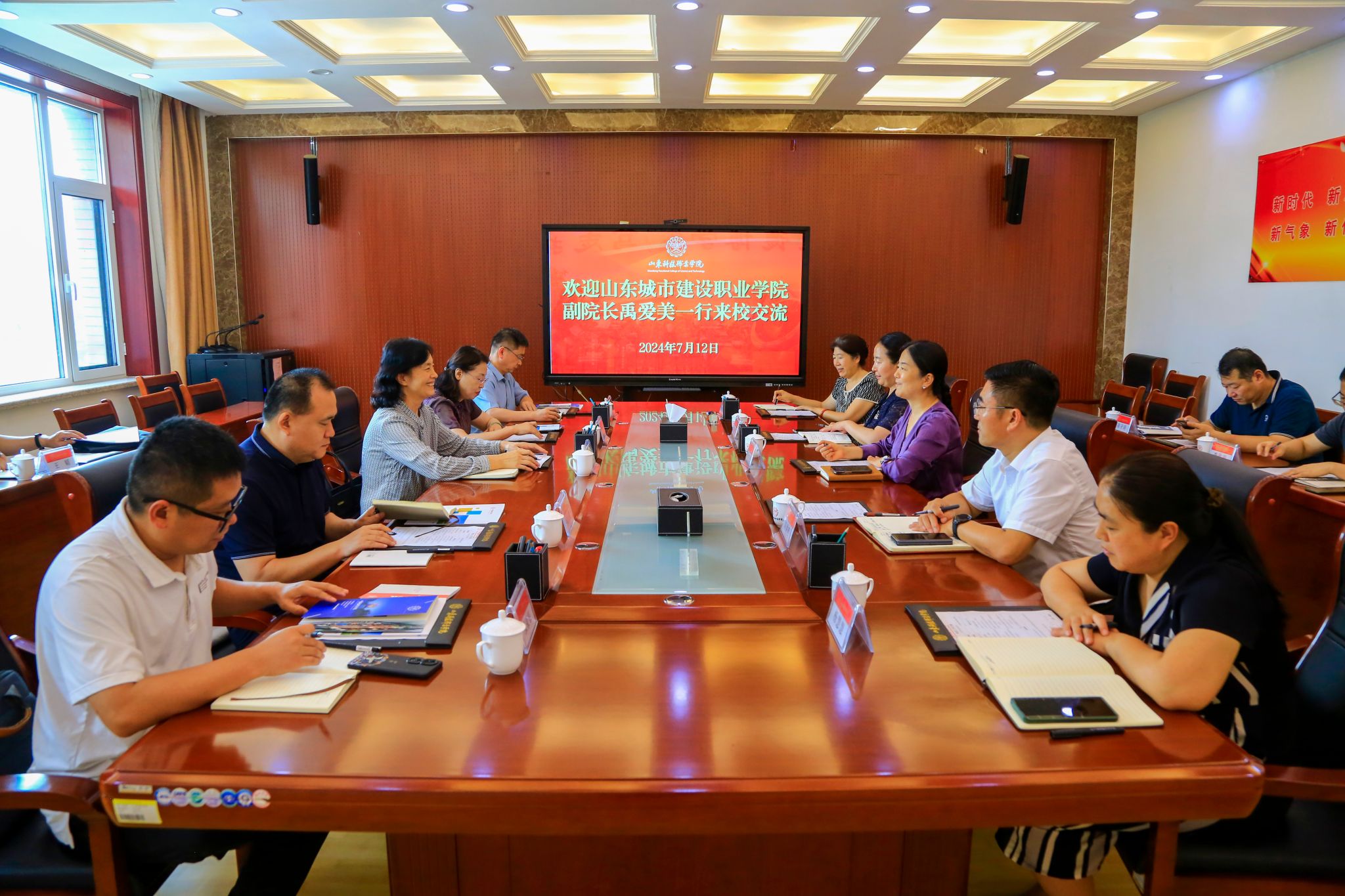 7月12日上午,山東城市建設(shè)職業(yè)學(xué)院副院長(zhǎng)禹愛(ài)美一行來(lái)我校考察交流。學(xué)校黨委委員、副校長(zhǎng)徐曉雁會(huì)見(jiàn)來(lái)訪客人并座談交流。