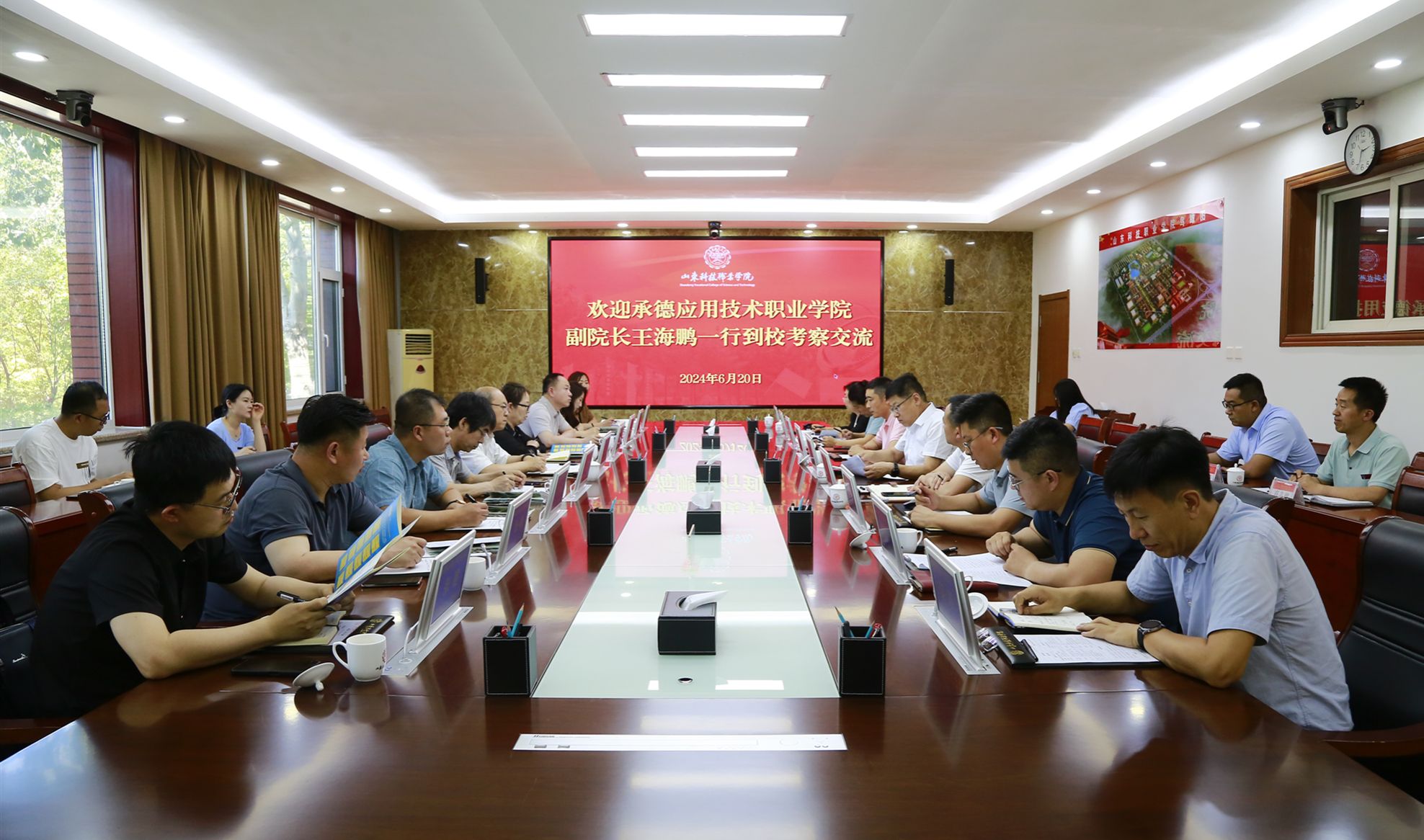 6月20日,承德應用技術職業學院黨委委員、副院長王海鵬一行11人到我校考察交流。學校黨委副書記李保城會見來訪客人并座談交流。