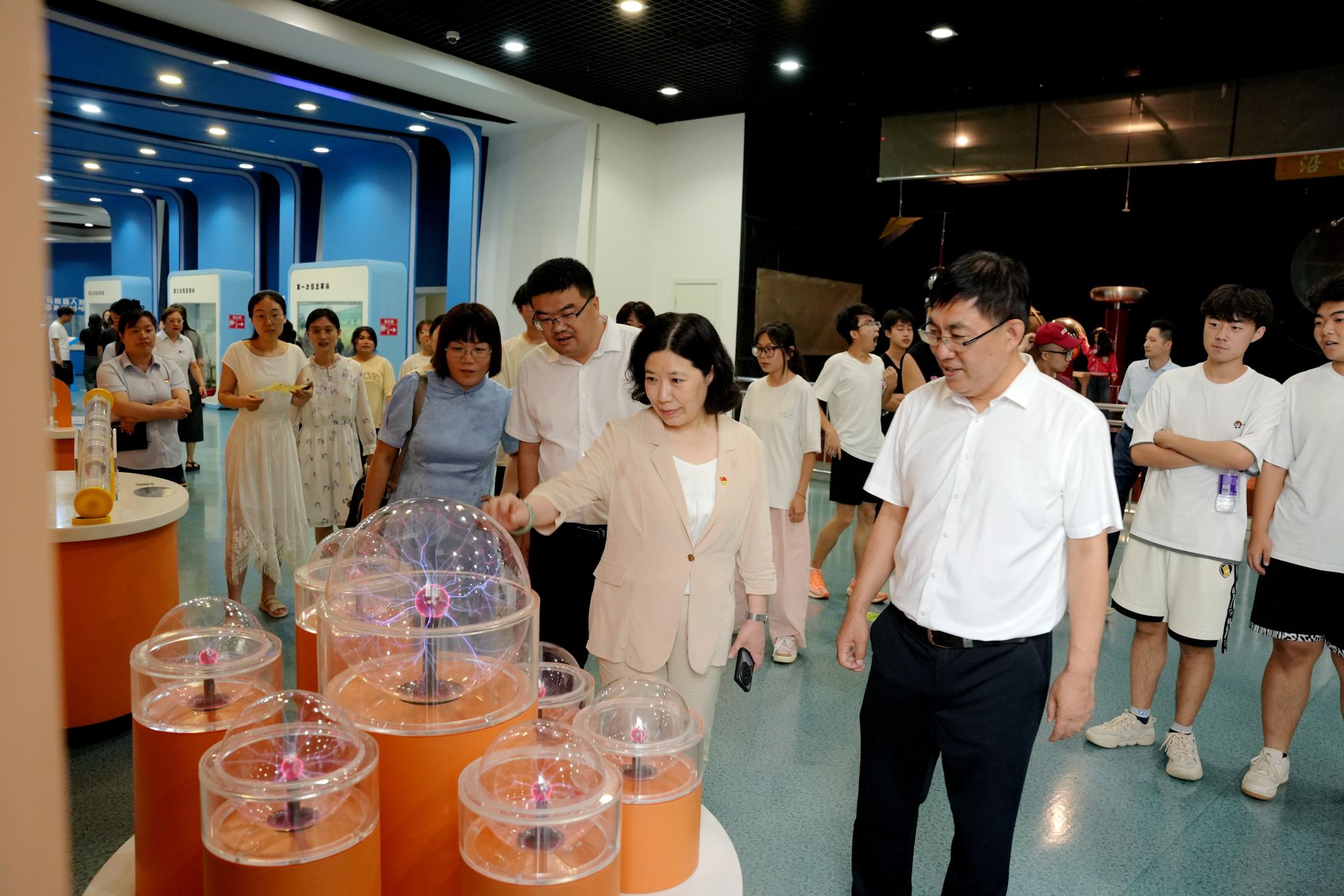 揭牌儀式后,師生共同參觀了市科技館“六大主題展區(qū)”和“六大體驗(yàn)區(qū)域”, 重點(diǎn)觀摩了魯班鎖、機(jī)器人表演劇場(chǎng)、數(shù)字科技館、校園創(chuàng)客空間等特色展品展項(xiàng),實(shí)地體驗(yàn)了黨員示范崗—4D弧幕影院。還專(zhuān)門(mén)深入市科技館黨建科普文化長(zhǎng)廊、“科普講習(xí)所”和“四點(diǎn)半”黨校進(jìn)行觀摩調(diào)研。廣大師生沉浸式感受到了科學(xué)發(fā)展和科技創(chuàng)新的力量。