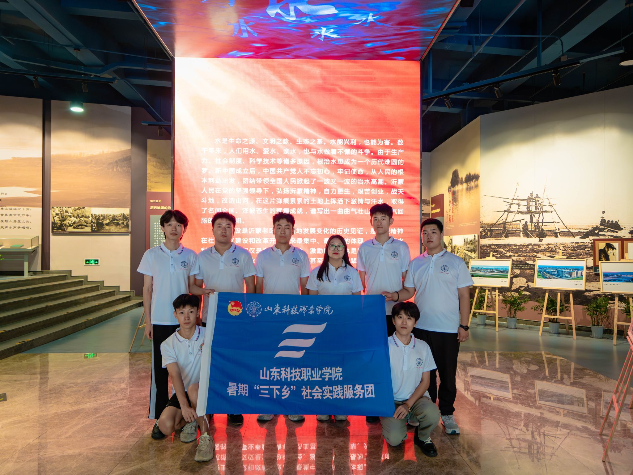 8月4日,智能制造系“紅色智能制造 青春向黨同行”實踐團隊探訪沂蒙水利建設展覽館,回溯了沂蒙水利建設的壯麗歷程,深刻領悟沂蒙精神,汲取前行動力。展覽以時間為序,展現“瑯琊水韻”至“水潤沂蒙”五大篇章,生動講述了張清波、臧西山等英雄事跡及“厲家寨”“沂蒙女子推車隊”等傳奇,彰顯了導沭整沂、千庫萬塘等水利工程的輝煌成就,詮釋了“綠水青山就是金山銀山”的綠色發展理念。