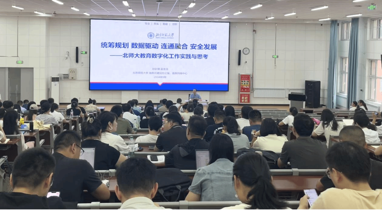 講座中,孫秋瑞教授詳細介紹了北師大在教育數字化轉型方面的實踐經驗與成效。他提到,北師大在推動教育數字化過程中,注重統籌規劃,通過數據驅動,實現了校園資源的連通與融合,有效提升了學校治理體系和治理能力的現代化水平。同時,北師大還高度重視網絡安全,為教育數字化轉型提供了堅實保障。