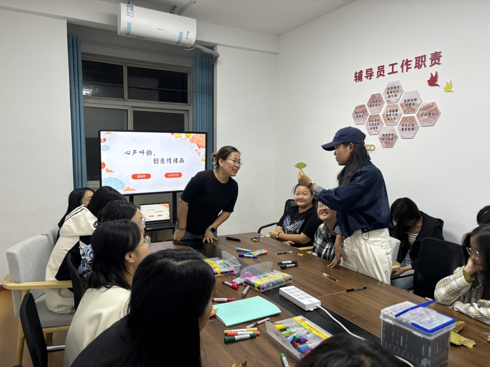 為推動我系心理健康教育工作,引導(dǎo)學(xué)生認(rèn)識自我、接納自我,培養(yǎng)學(xué)生理性平和、積極健康的心理,基礎(chǔ)部于10月14日在“一站式”社區(qū)開展了“心聲葉韻,創(chuàng)意情緒畫”的心理團(tuán)輔活動。此次活動由系部學(xué)生科老師指導(dǎo),24名同學(xué)報名參加。