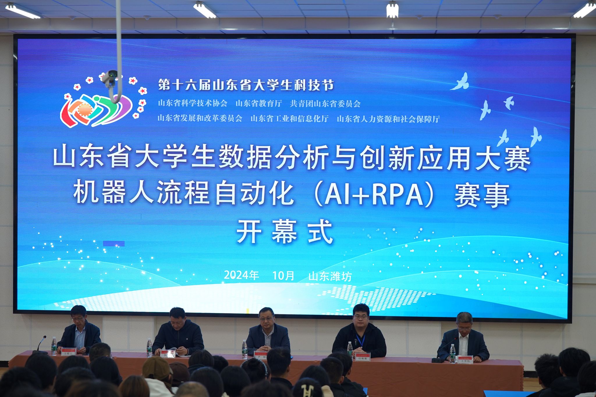 10月19日,由山東省科學(xué)技術(shù)協(xié)會、山東省教育廳、共青團山東省委、山東省發(fā)展和改革委員會、山東省工業(yè)和信息化廳、山東省人力資源和社會保障廳聯(lián)合主辦,山東省大數(shù)據(jù)研究會、山東科技職業(yè)學(xué)院承辦,山東省大數(shù)據(jù)研究會職業(yè)教育分會協(xié)辦的第十六屆山東省大學(xué)生科技節(jié)賽事,大學(xué)生數(shù)據(jù)分析與創(chuàng)新應(yīng)用大賽機器人流程自動化(AI+RPA)賽項在厚德樓隆重開幕。賽事主辦單位、承辦單位、裁判員代表、來自全省各地30多個高校的160余支參賽代表隊及志愿服務(wù)人員等500余人參加開幕式。開幕式由學(xué)校信息工程系黨總支書記王芳偉主持。