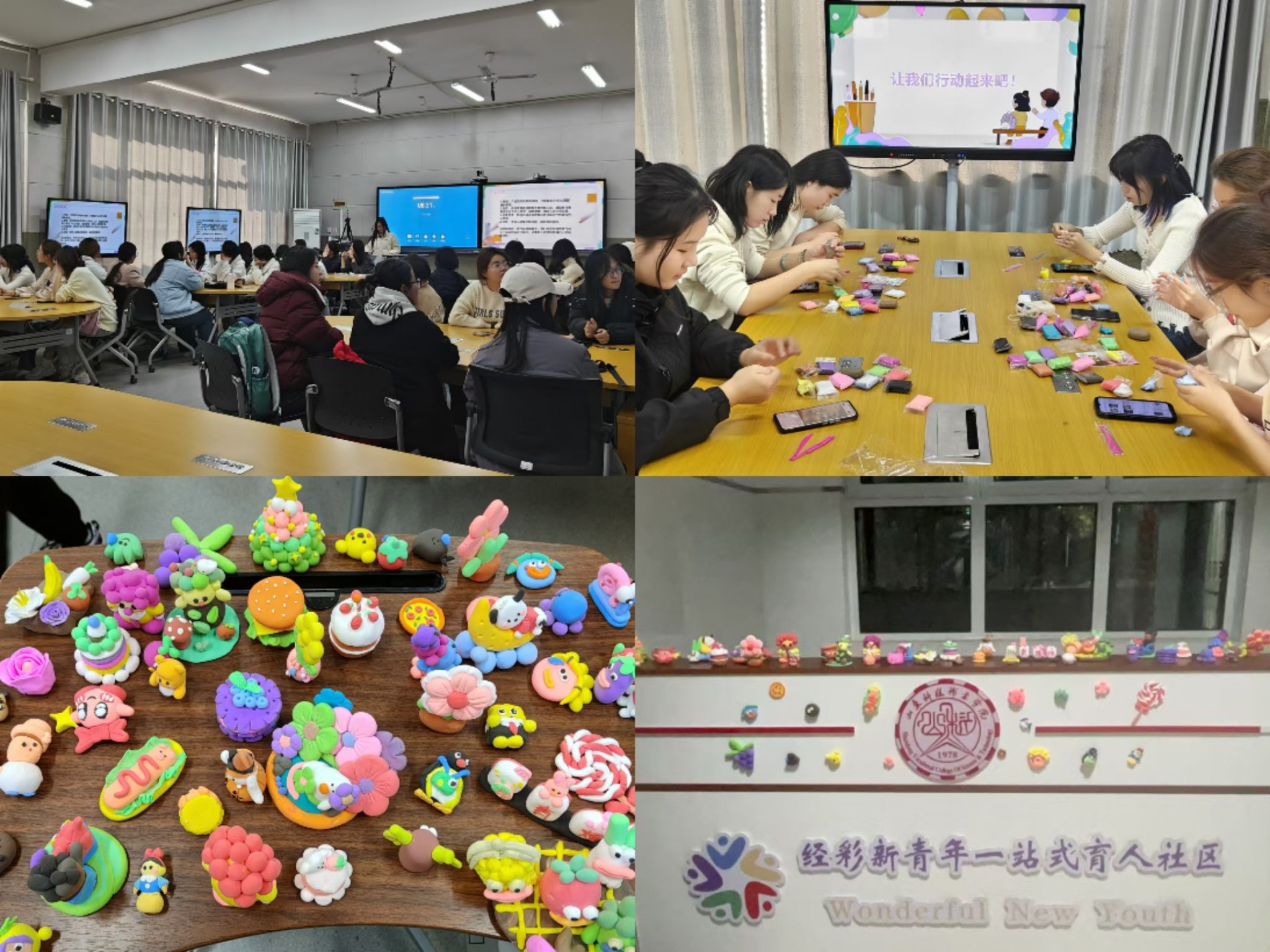 活動開始,主持人介紹活動宗旨,解讀比賽規則及投票流程。參加人員釋放想象力與創造力,將構思與情感巧妙融入黏土作品中,在DIY過程中共同經歷了一場心靈解壓之旅?;顒游猜?,參與者將黏土作品放置在“經”彩新青年“一站式”學生社區展示,吸引了眾多參觀者拍照打卡。