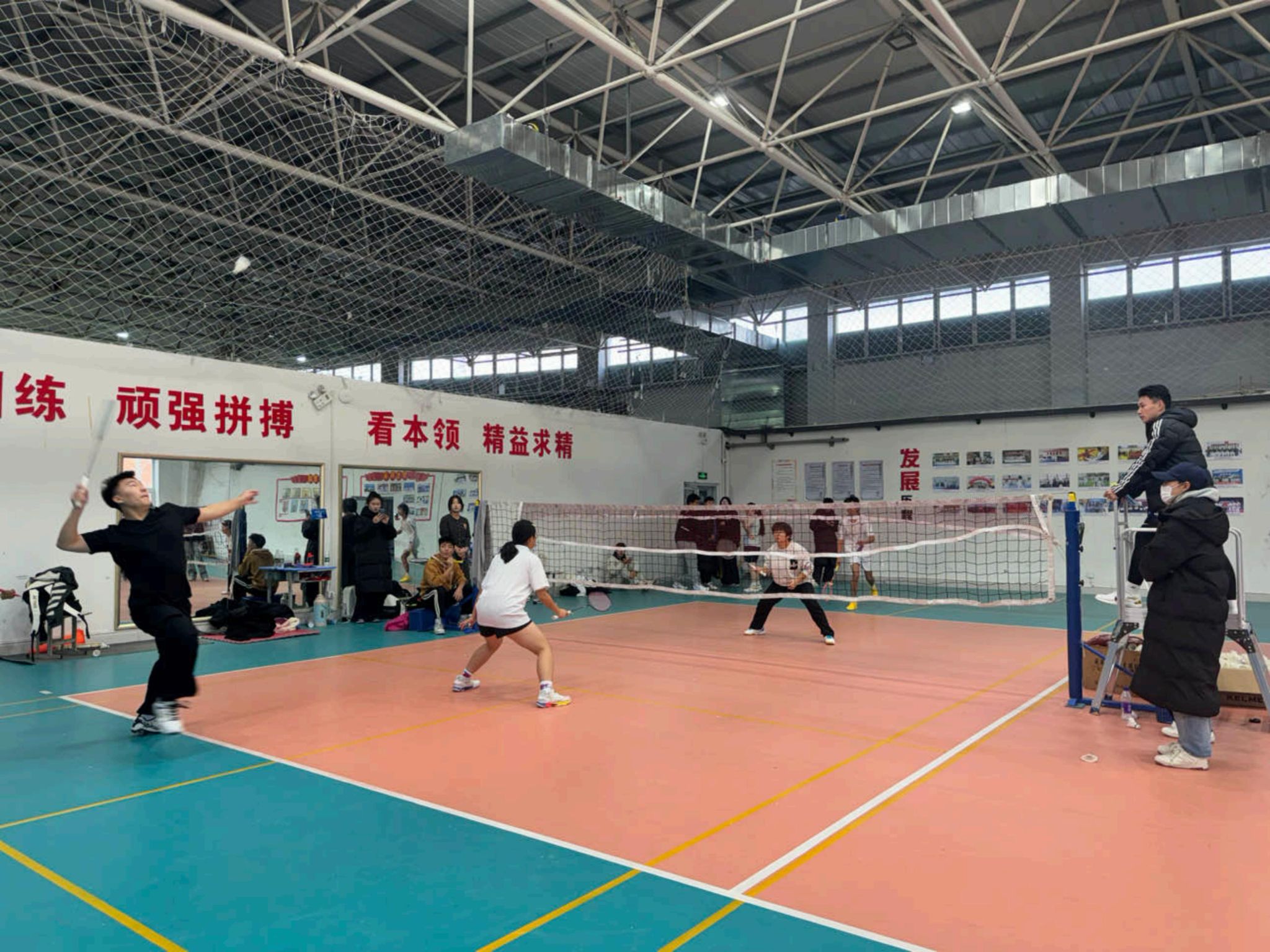 賽場上,清脆響亮的擊球聲迸發出十足的朝氣與活力,一路氣勢如虹,殺球時力量與速度完美融合,起跳、揮拍一氣呵成,凌厲球風讓對手防不勝防,扣人心弦的攻防轉換,展現出同學們的高超技藝與團隊協作精神。盡管在比賽中遭遇強勁對手,但同學們不畏強敵,展現出了頑強拼搏的精神面貌。
