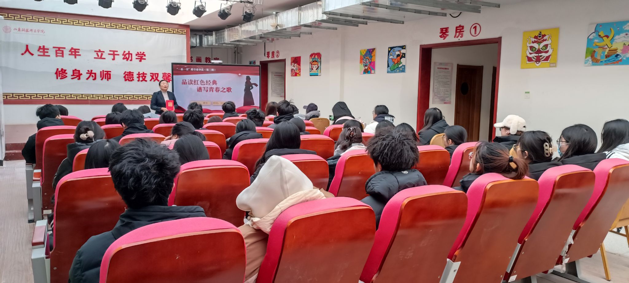 為加強(qiáng)紅色文化教育,培養(yǎng)學(xué)生的愛國主義情懷,12月21日上午,學(xué)校在基礎(chǔ)部實(shí)訓(xùn)中心舉辦《品讀紅色經(jīng)典,譜寫青春之歌》紅色經(jīng)典導(dǎo)讀活動(dòng)。活動(dòng)邀請基礎(chǔ)部黨總支副書記譚芳老師做閱讀分享,各系部學(xué)生代表100余人參加活動(dòng)。