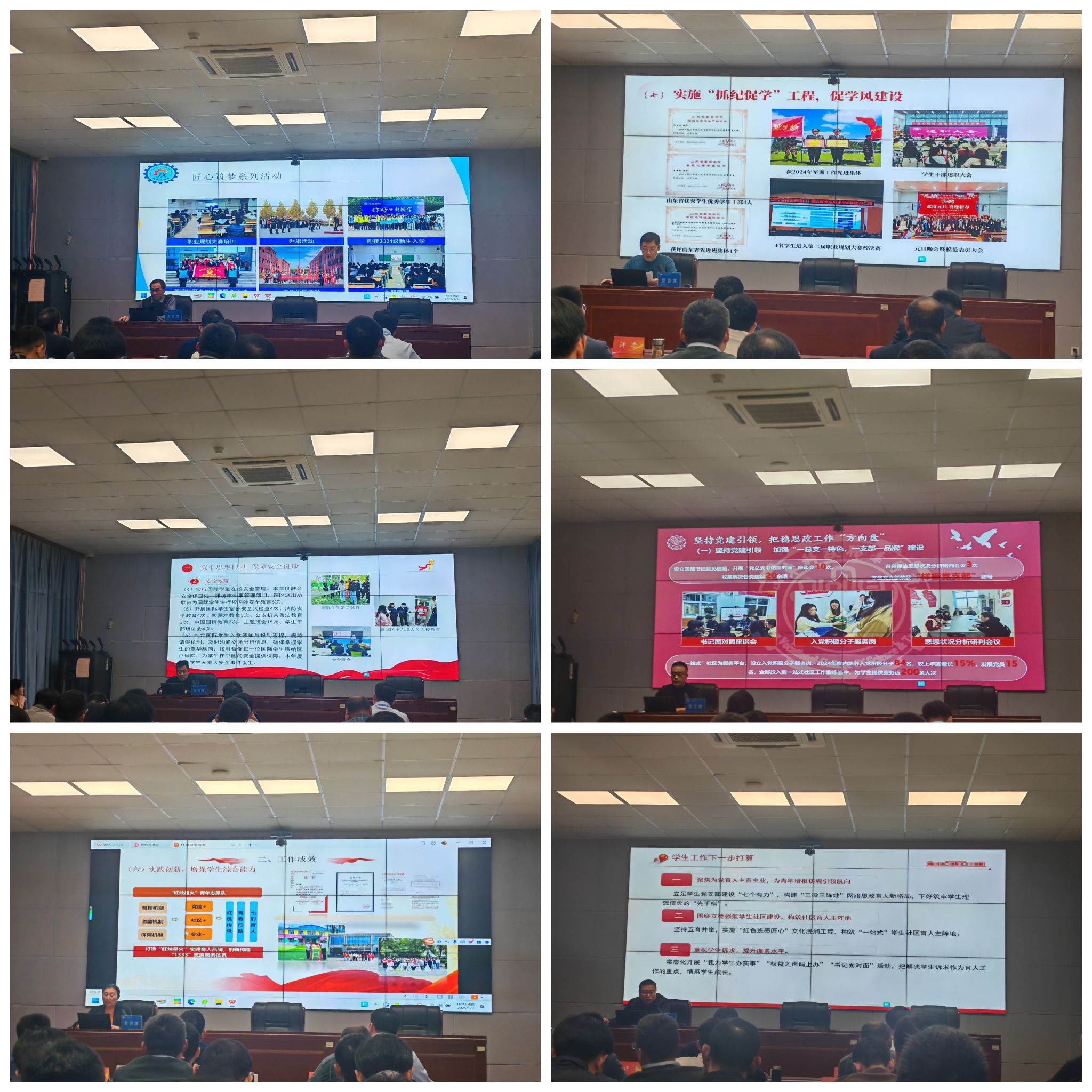 會上,11位分管系部學生工作的副書記依次上臺述職。他們圍繞本部門日常基礎工作、突出工作成效、特色亮點工作、存在問題及下一步工作打算等五個方面進行了詳細匯報。各系部立足立德樹人根本任務,堅持“引領、服務、關愛、助力”的工作理念,以“有效度的思想引領和有溫度的成長服務”為主線,推動了學生思想政治教育與管理的高質量發展。述職現場氣氛熱烈,掌聲不斷。