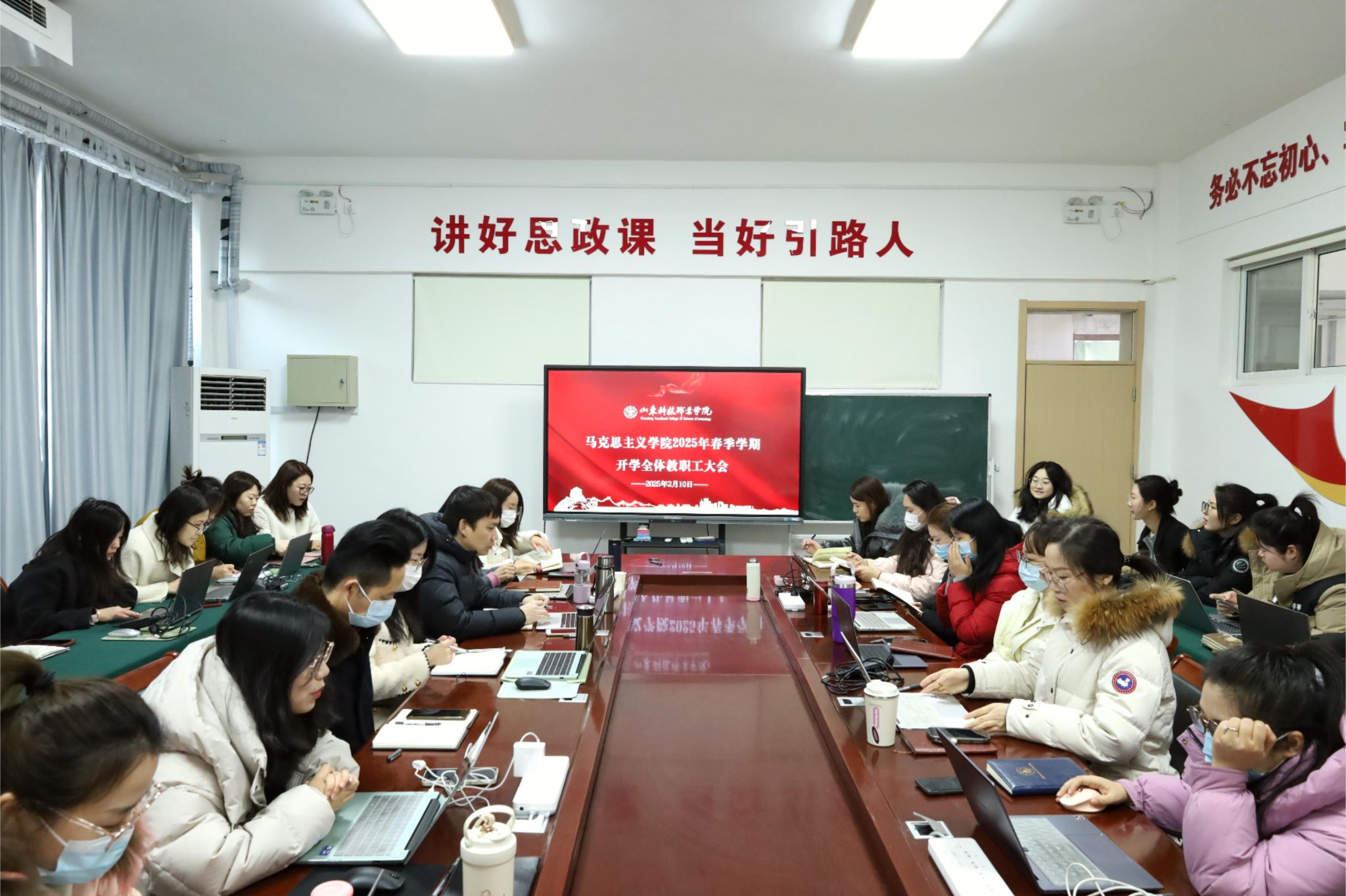 會上,部門班子成員依次就“課程資源建設、科研項目培育、社會培訓服務”等工作進展情況作出匯報,同時在寒假期間,部門積極配合學校完成 “一師一檔” 材料整理工作,統(tǒng)籌協(xié)商制定 2025 年思政課建設行動規(guī)劃,系統(tǒng)修訂馬克思主義學院考核管理辦法等。