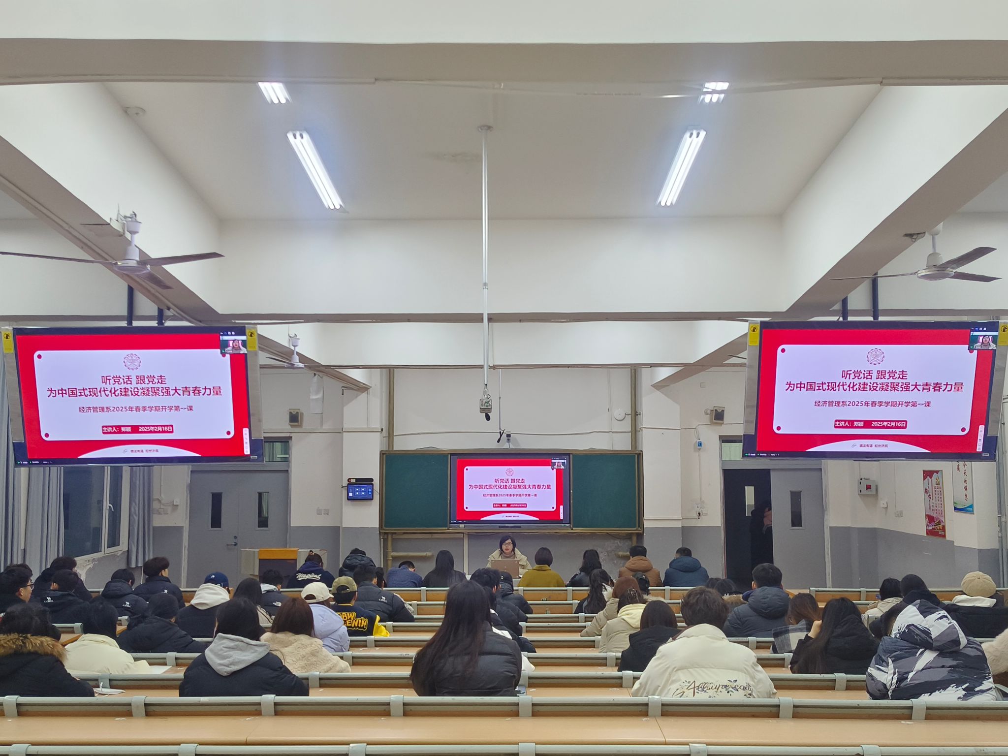 2月16日,經濟管理系以“主會場+釘釘直播”的形式線上線下多渠道開展2025年度春季學期開學第一課,活動覆蓋我系三級在校生。