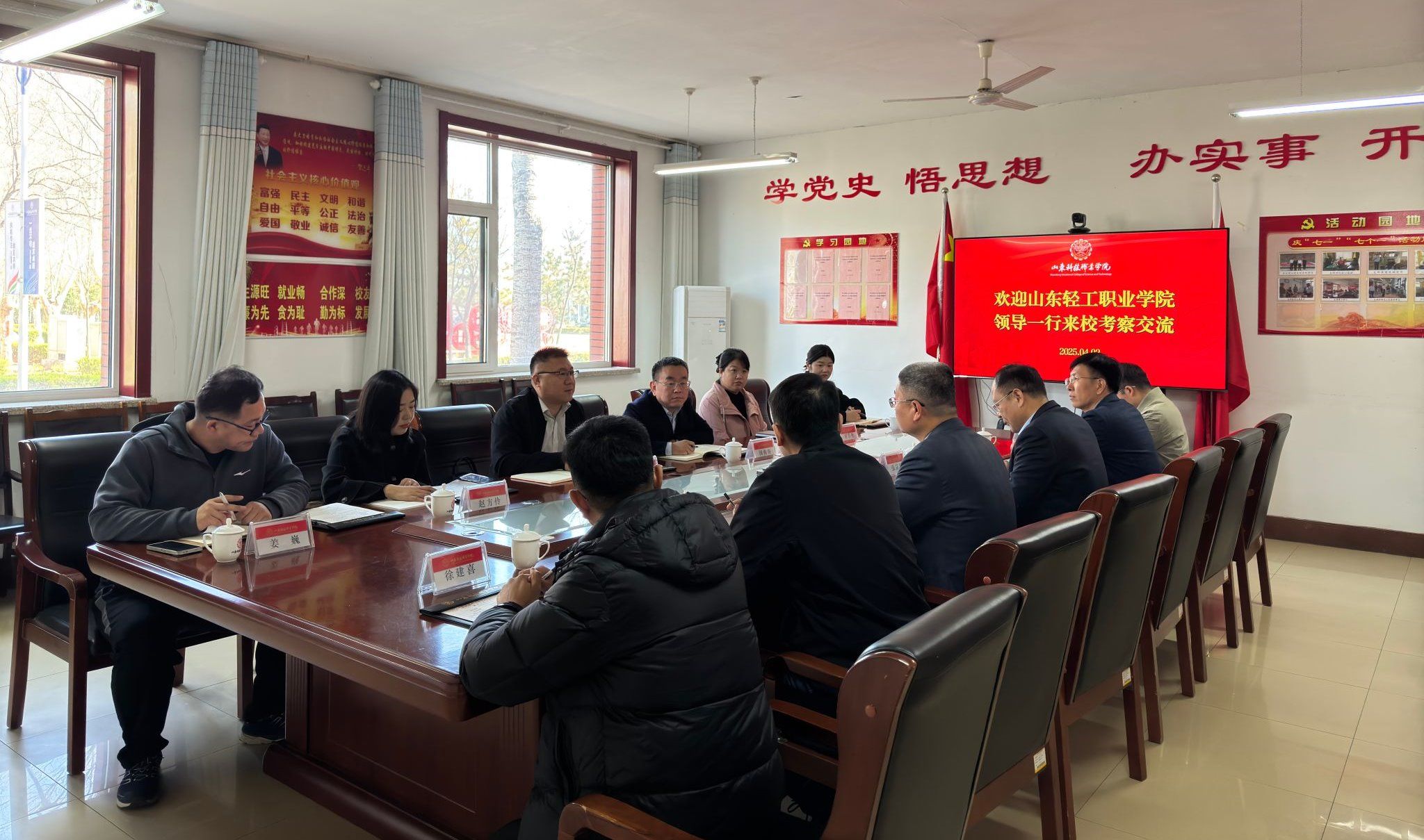 山東輕工職業學院一行肯定了我校在樣板黨支部建設、“一站式”學生社區建設、學生管理等方面取得的成效,表示此次調研交流收獲頗多,同時還就今后雙方在黨支部共建、師生交流等方面的交流合作提出期許。雙方將以此次交流活動為契機,加強合作交流,共同提升進步。