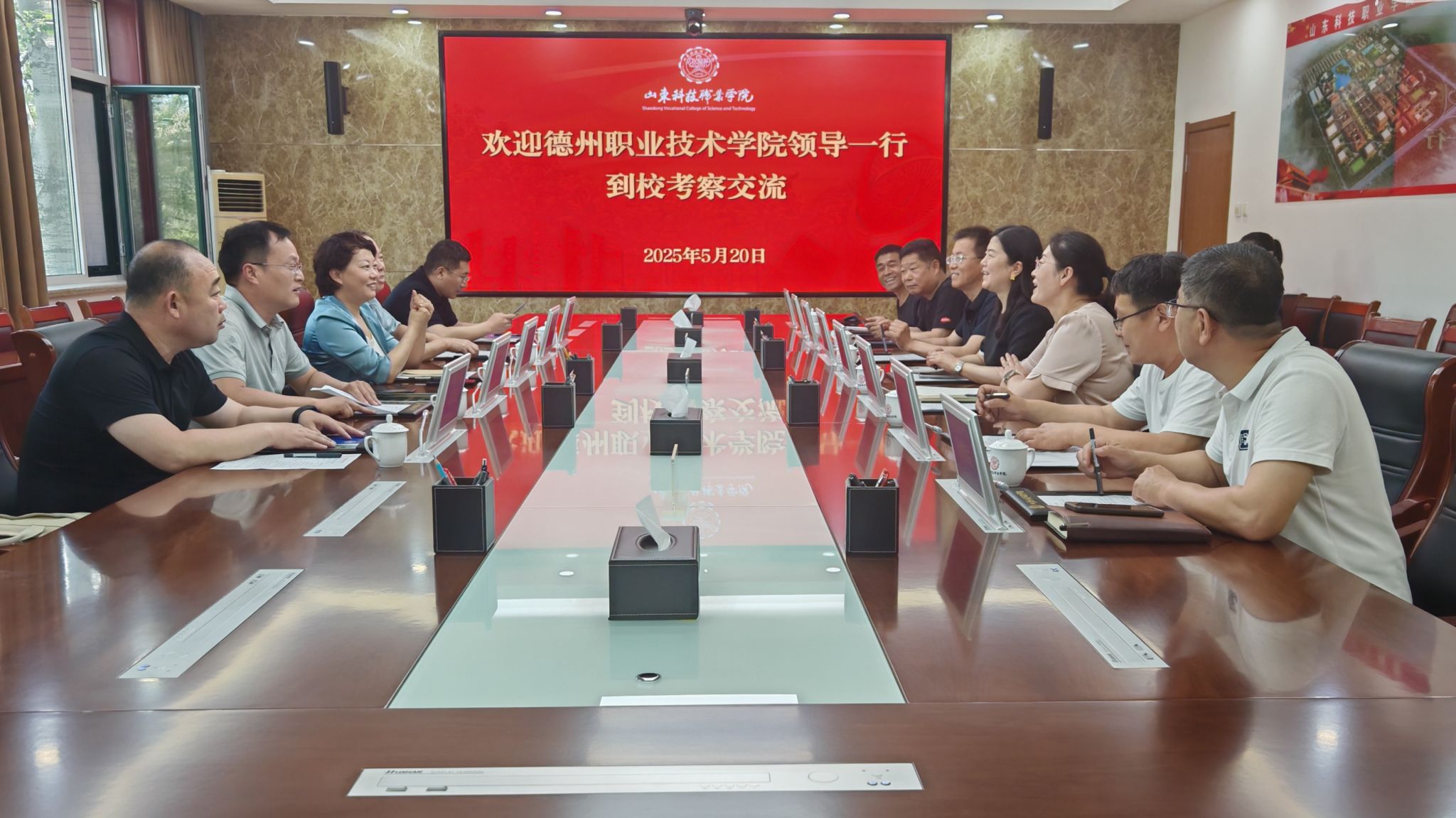 5月20日上午,德州職業技術學院黨委副書記趙曉靜一行5人來我校考察交流。學校黨委委員、副校長徐曉雁會見來訪客人并座談交流。基建處、后勤服務管理處相關人員參加座談。