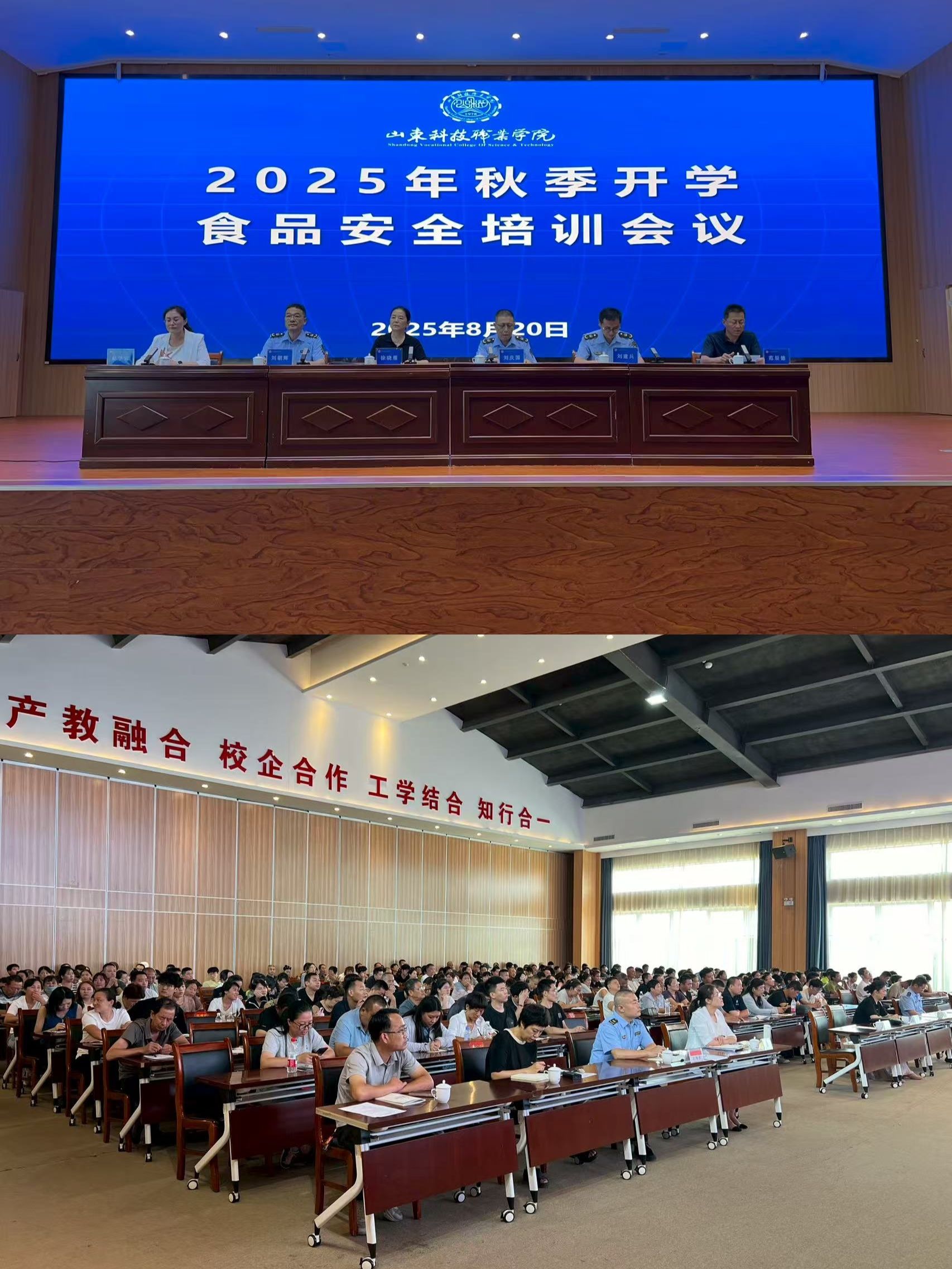 為進(jìn)一步落實(shí)立德樹人根本任務(wù),全面提升校園食品安全治理能力,8月20日下午,我校在南院報(bào)告廳召開2025年秋季開學(xué)食品安全培訓(xùn)會(huì)。學(xué)校黨委委員、副校長(zhǎng)徐曉雁出席并講話,濰城區(qū)市場(chǎng)監(jiān)督管理局食品安全監(jiān)管科科長(zhǎng)劉慶國、食品監(jiān)督管理科科長(zhǎng)劉朝輝,望留市場(chǎng)監(jiān)管所所長(zhǎng)劉建兵到會(huì)指導(dǎo)。后勤服務(wù)管理處黨政負(fù)責(zé)人、各餐飲勞務(wù)公司、原材料供應(yīng)商、校內(nèi)配送團(tuán)隊(duì)負(fù)責(zé)人及一線員工共260余人參加。