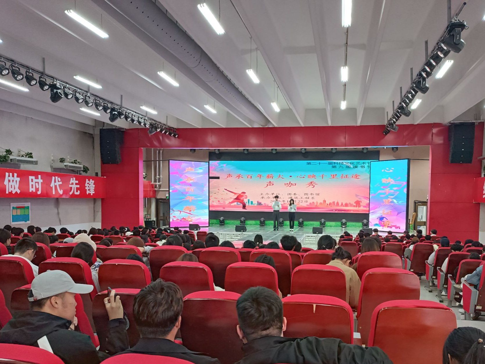 10月22日,學(xué)校第二十一屆科技文化藝術(shù)節(jié)、第九屆讀書節(jié)活動(dòng)——“聲承百年薪火,心映千里征途”聲咖秀比賽在工業(yè)中心報(bào)告廳舉行。本次比賽由學(xué)校團(tuán)委、圖書館主辦,建筑工程系承辦,各系部10個(gè)參賽隊(duì)參加比賽,學(xué)生代表到場(chǎng)觀看比賽。