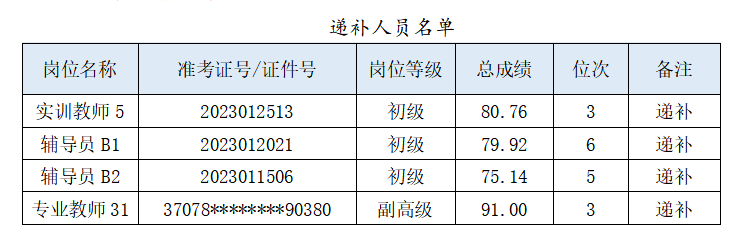 根據《山東科技職業學院2023年公開招聘工作人員簡章》,因部分考生放棄體檢,現對遞補進入體檢、考察范圍人員公告如下。