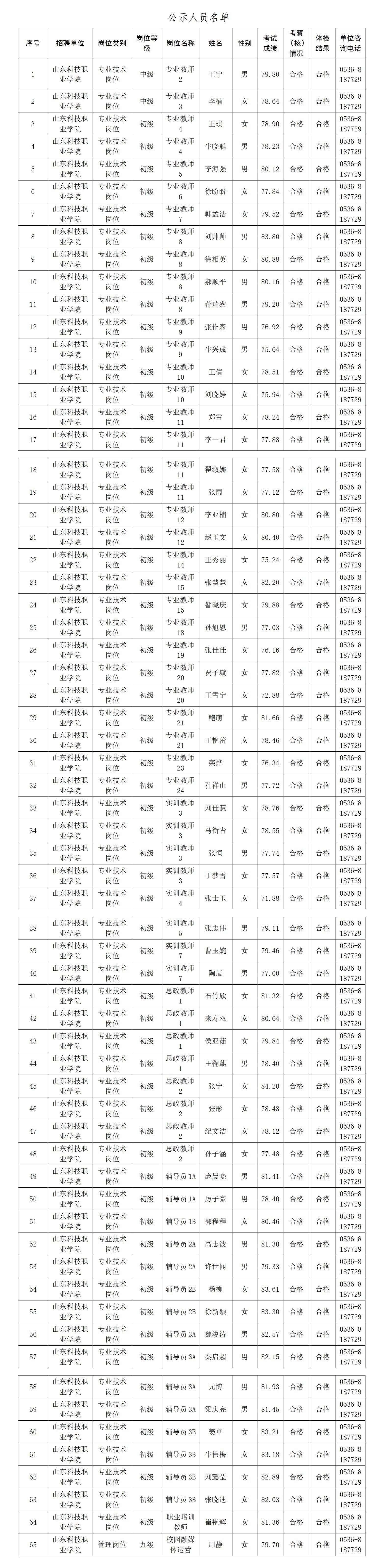 根據省委組織部、省人力資源社會保障廳《關于印發2024年度省屬事業單位公開招聘工作實施方案的通知》(魯人社發〔2023〕14號)等相關規定,按照崗位招聘計劃,山東科技職業學院組織完成了部分崗位公開招聘考試、考察、體檢等工作,現對第一批擬聘用人員進行公示。公示期為7個工作日,自2024年8月2日至8月12日(不含節假日)。公示期間,如對公示人選有異議,請及時向山東科技職業學院反映。