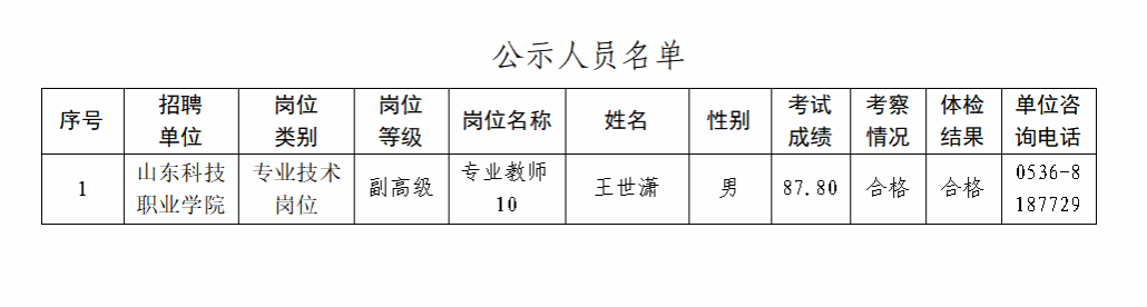 根據(jù)中共山東省委組織部、山東省人力資源和社會(huì)保障廳《關(guān)于印發(fā)2025年度省屬事業(yè)單位公開招聘工作實(shí)施方案的通知》(魯人社發(fā)〔2024〕15號(hào))等相關(guān)規(guī)定,按照崗位招聘計(jì)劃,山東科技職業(yè)學(xué)院組織完成了部分崗位公開招聘考試、考察、體檢等工作,現(xiàn)對(duì)第二批擬聘用人員進(jìn)行公示。公示期為5個(gè)工作日,自2025年5月19日至5月23日(不含節(jié)假日)。公示期間,如對(duì)公示人選有異議,請(qǐng)及時(shí)向山東科技職業(yè)學(xué)院反映。